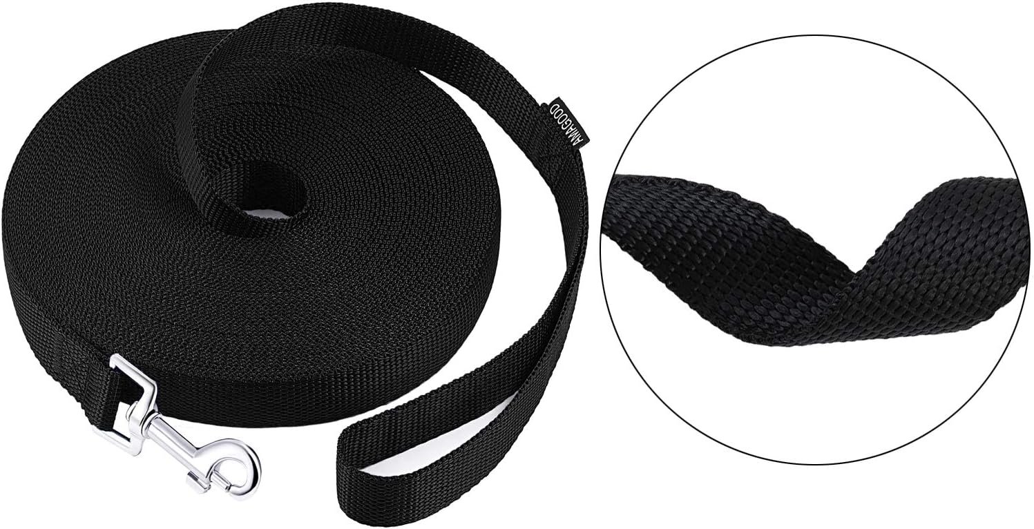 AMAGOOD Dog/Puppy Obedience Recall Training Agility Lead-15 ft 20 ft 30 ft 50 ft Long Leash-for Dog Training,Tie Out,Play,Safety,Camping (15 feet, Black)