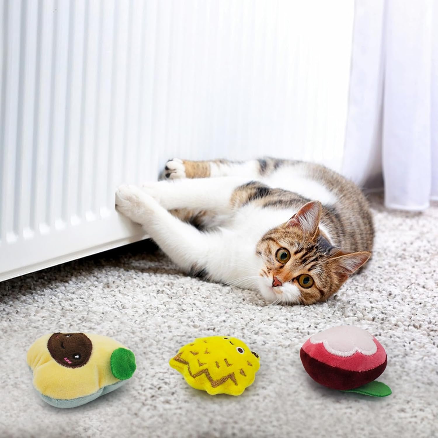 1. These lovely fruit cat toys are so light that cats can take them anywhere with their mouths and hide them.