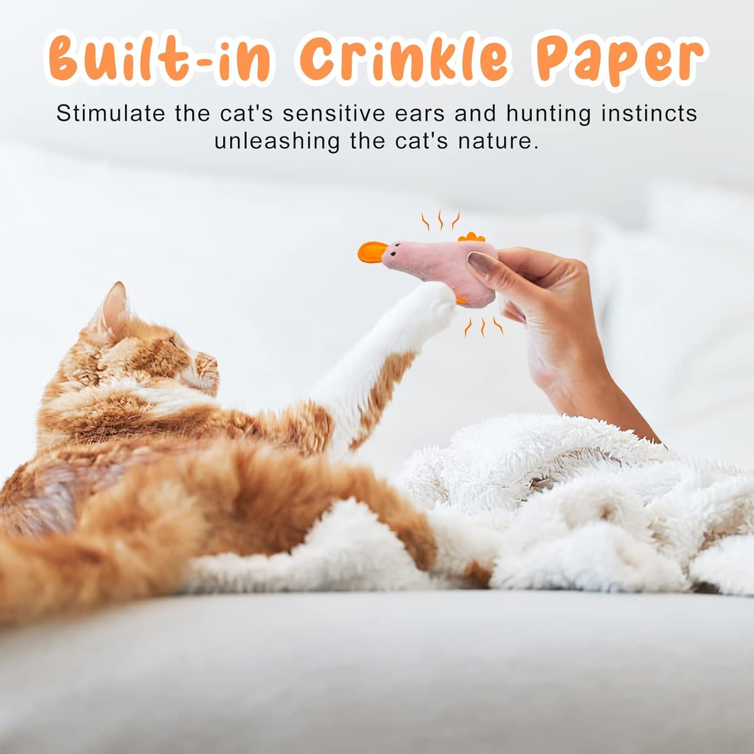 ❤【Internal Crinkle Paper for Fun】: The cat crinkle toy has a built-in crinkle paper that rustles when the cat claws it, which will stimulate the cat’s sensitive ears and hunting instincts, unleashing the cat’s nature.