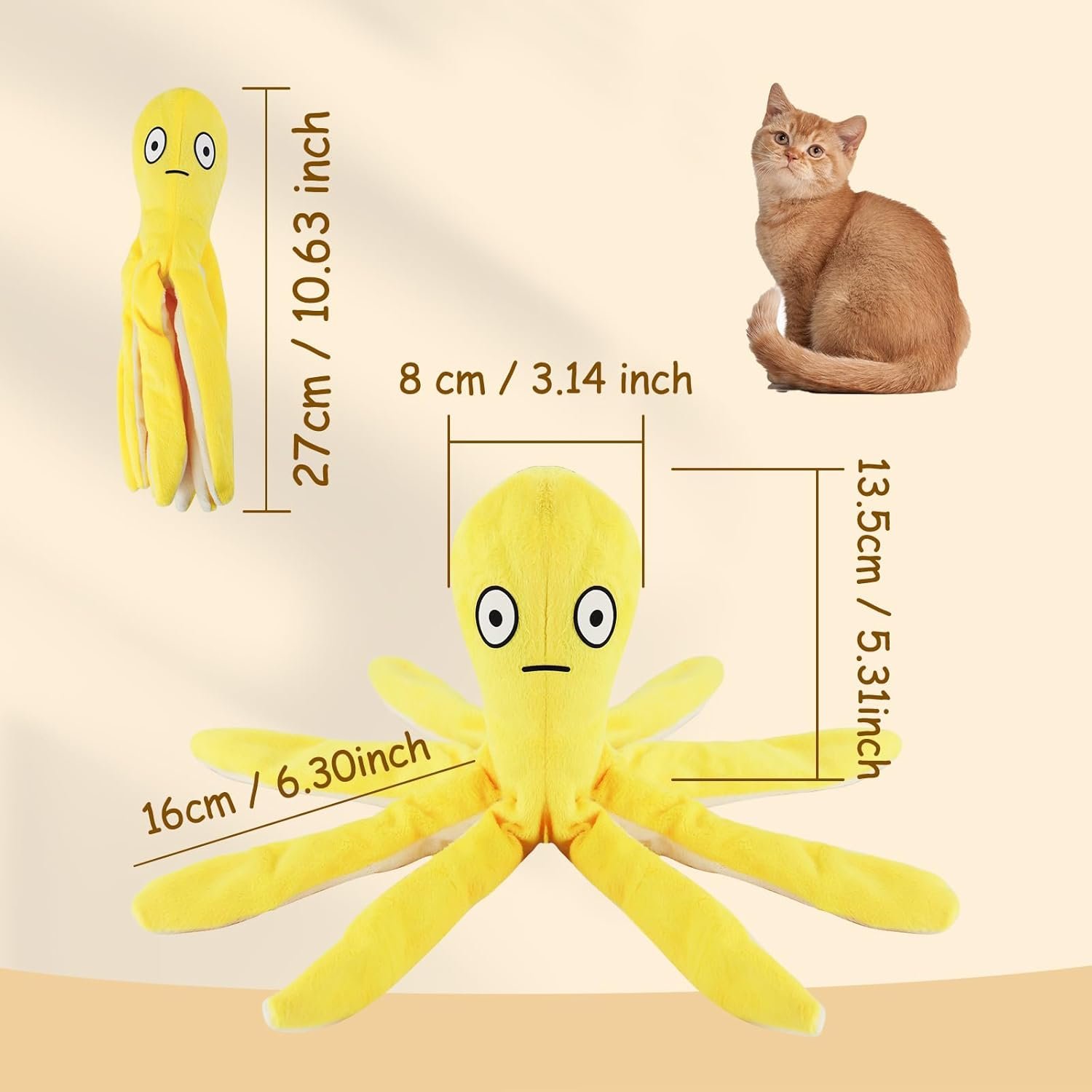 Funny Octopus Shape: This cat plush toy features a cute octopus shape. A pair of big eyes also make it look more vivid. With a bright color, it can effectively catch cats’ eyes and draw their attention