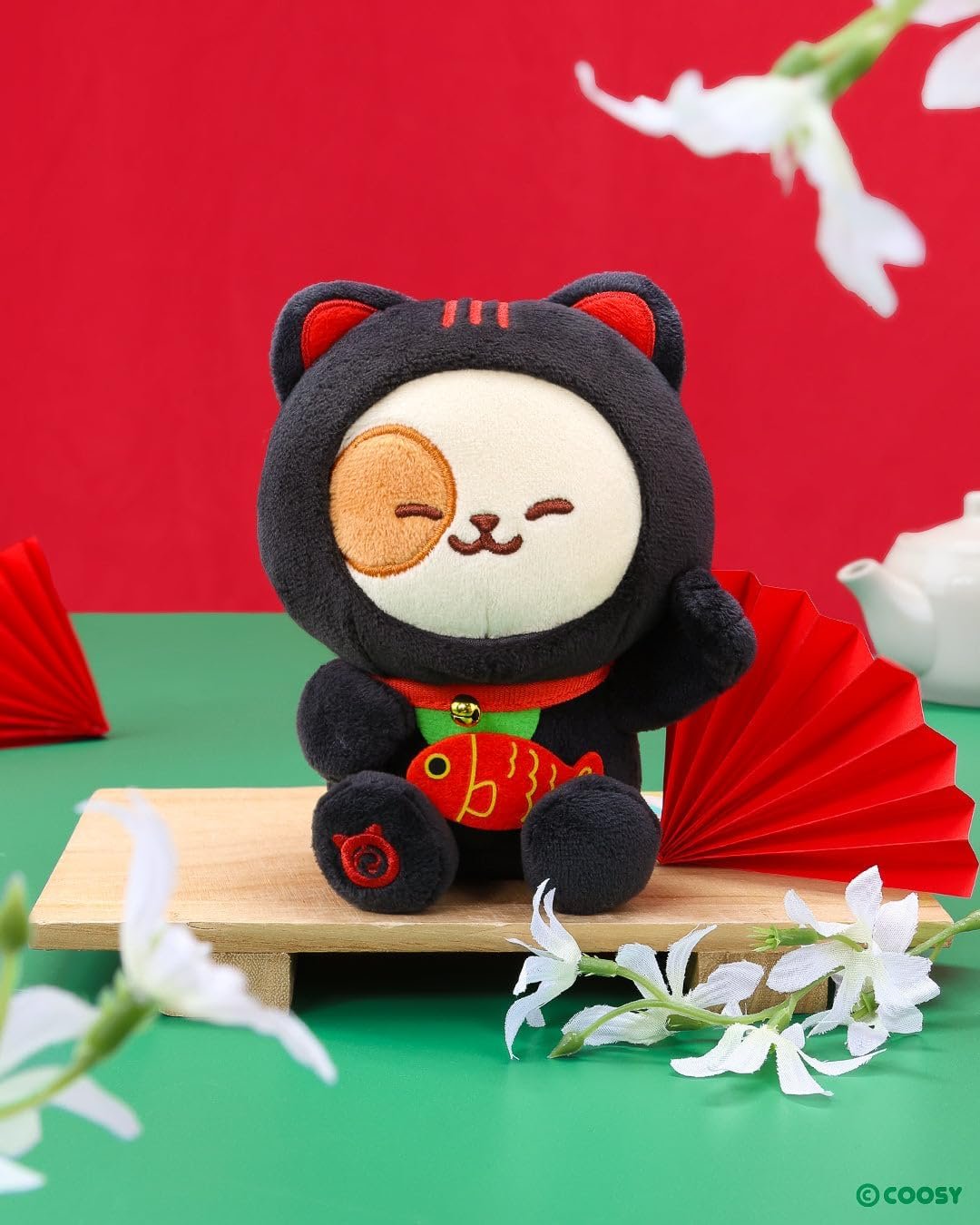 Anirollz Black Lucky Cat Puppiroll Plush – Maneki-Neko Inspired Soft Collectible Animal Toy