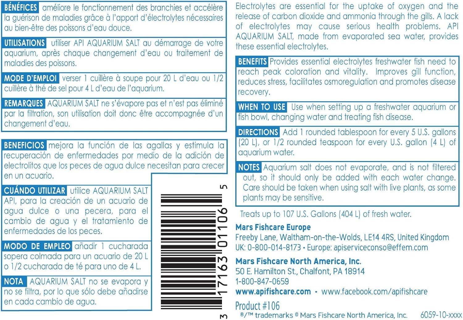 Contains one (1) API AQUARIUM SALT Freshwater Aquarium Salt 16-Ounce Box