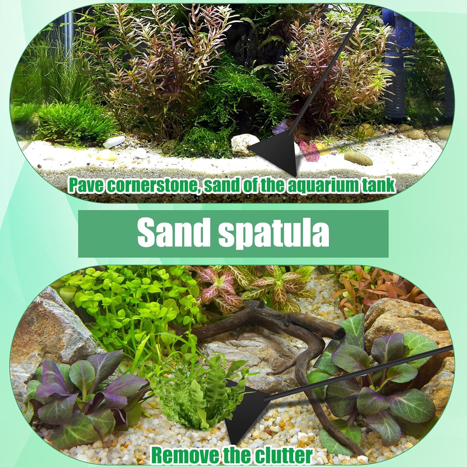 Multi Functions: Aquarium aquascape tools kits could help trim plant, furnishing aquarium landscape with cornerstone, sand, but also could clean the aquarium tank, remove the dirty things from the bottom of the aquarium.