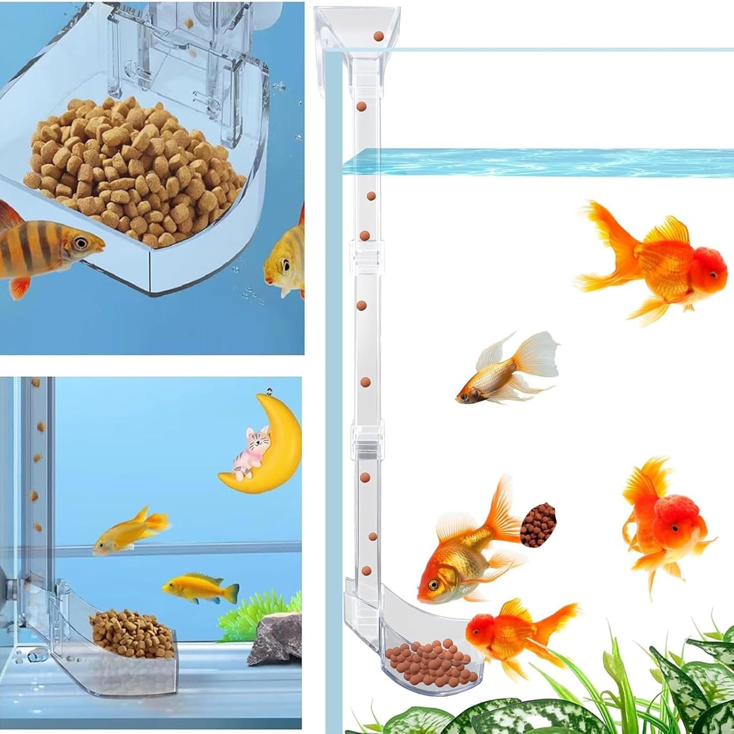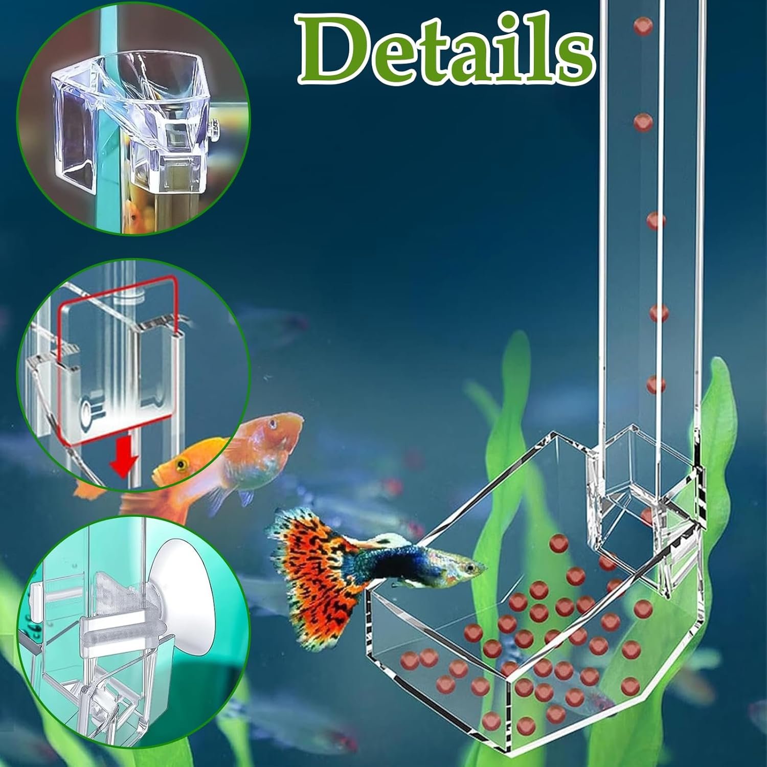 Dual Fixation System: Equipped with robust hooks and strong suction cups, the feeding set offers versatile installation options. Attach it securely to your aquarium glass or hang it conveniently inside the tank.