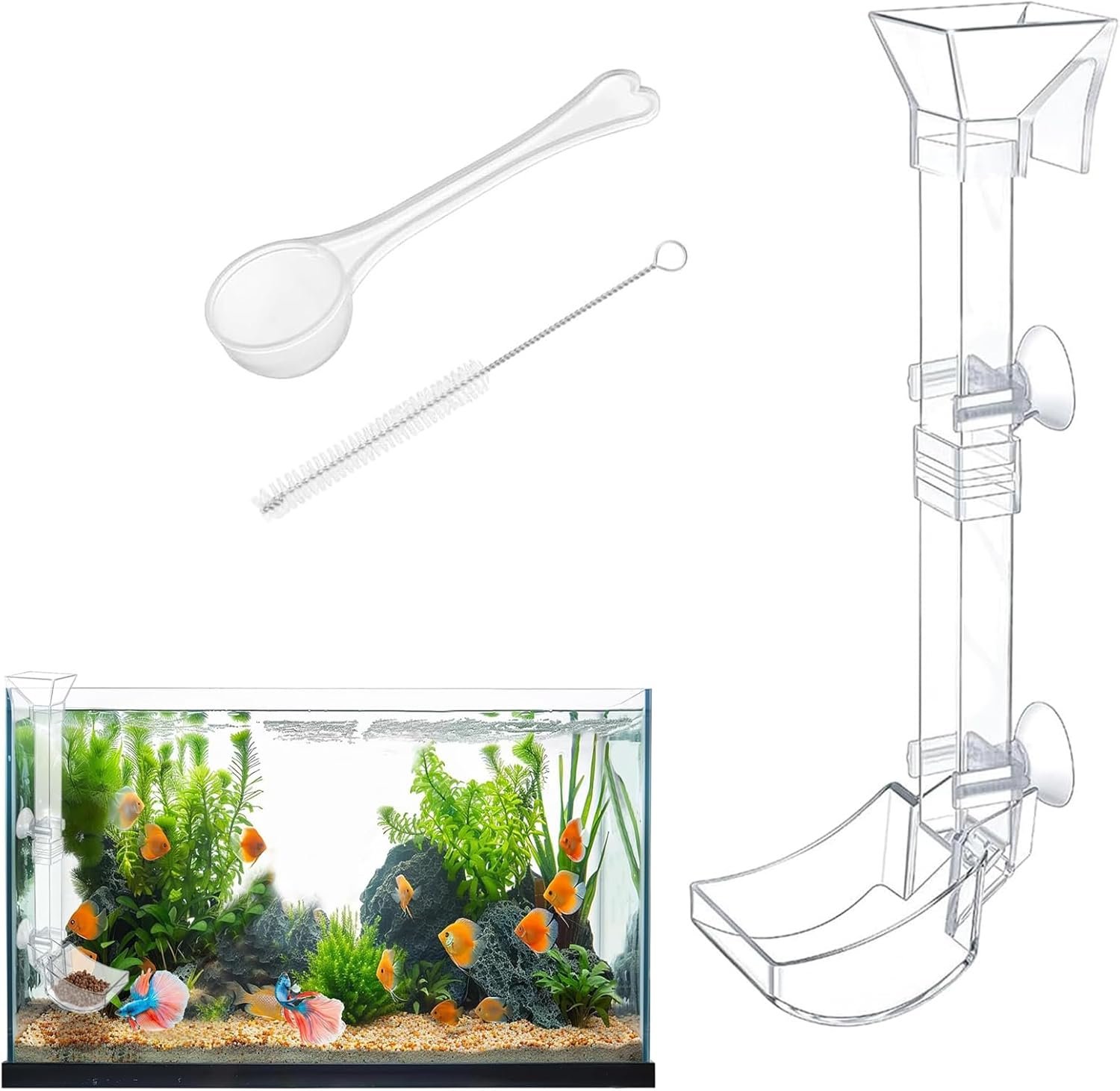 Introducing the Gzcnsel Aquarium Feeding Tube Set: The Ultimate Solution for Your Aquarium Feeding Needs Discover the pinnacle of precision in aquarium care with the Gzcnsel Aquarium Feeding Tube Set. Designed specifically for discerning aquarium enthusiasts, this set offers a seamless blend of style, functionality, and durability. Made from high-quality, crystal-clear acrylic, it integrates perfectly into your aquarium without disrupting its aesthetic. Ideal for hobbyists who cherish clarity and cleanliness in their aquatic environments, this feeding tube set caters specifically to those who manage both small and medium-sized tanks, particularly those housing delicate species like shrimp and small fish. Our feeding tube set stands apart with its dual fixation system, featuring robust hooks and strong suction cups. This allows for flexible placement within the tank—either securely attached to the glass or suspended inside, providing a stable feeding station that doesn’t sway with the water’s current. The emotional peace of mind comes from knowing that your aquatic pets are fed in the safest manner possible, minimizing stress for both you and them. Feed with Precision: Gzcnsel’s Clear Acrylic Feeding Tube Set – Perfect Clarity for Perfect Results! The kit includes a 28cm long feeding tube, perfect for deep tanks up to 10 gallons, ensuring that food reaches even the shyest bottom dwellers. The upgraded funnel port simplifies feeding, allowing for direct, targeted food delivery that prevents waste and keeps your tank clean. Each set comes with a specially designed spoon for easy refills, a cleaning brush to maintain hygiene, and an extra suction cup for secure mounting. The ease of installation and the effectiveness in reducing food waste, contributing to cleaner tanks and healthier fish. The clear acrylic material not only offers durability but also ensures that your feeding setup remains invisible, maintaining the beauty of your aquatic display.