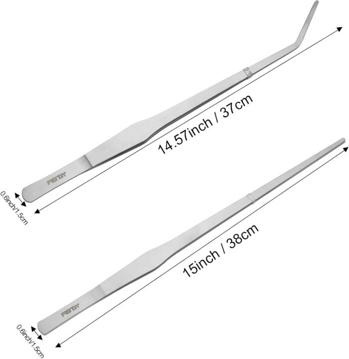 Aquarium Tweezers Extra Long 15 inches Feed Tong Clamps – FEITA Straight and Curved Stainless Steel 38cm Tweezers Set for Fish Tank Plants Aquascape Tools & Reptile Feeding Tongs – Sliver 2Pcs