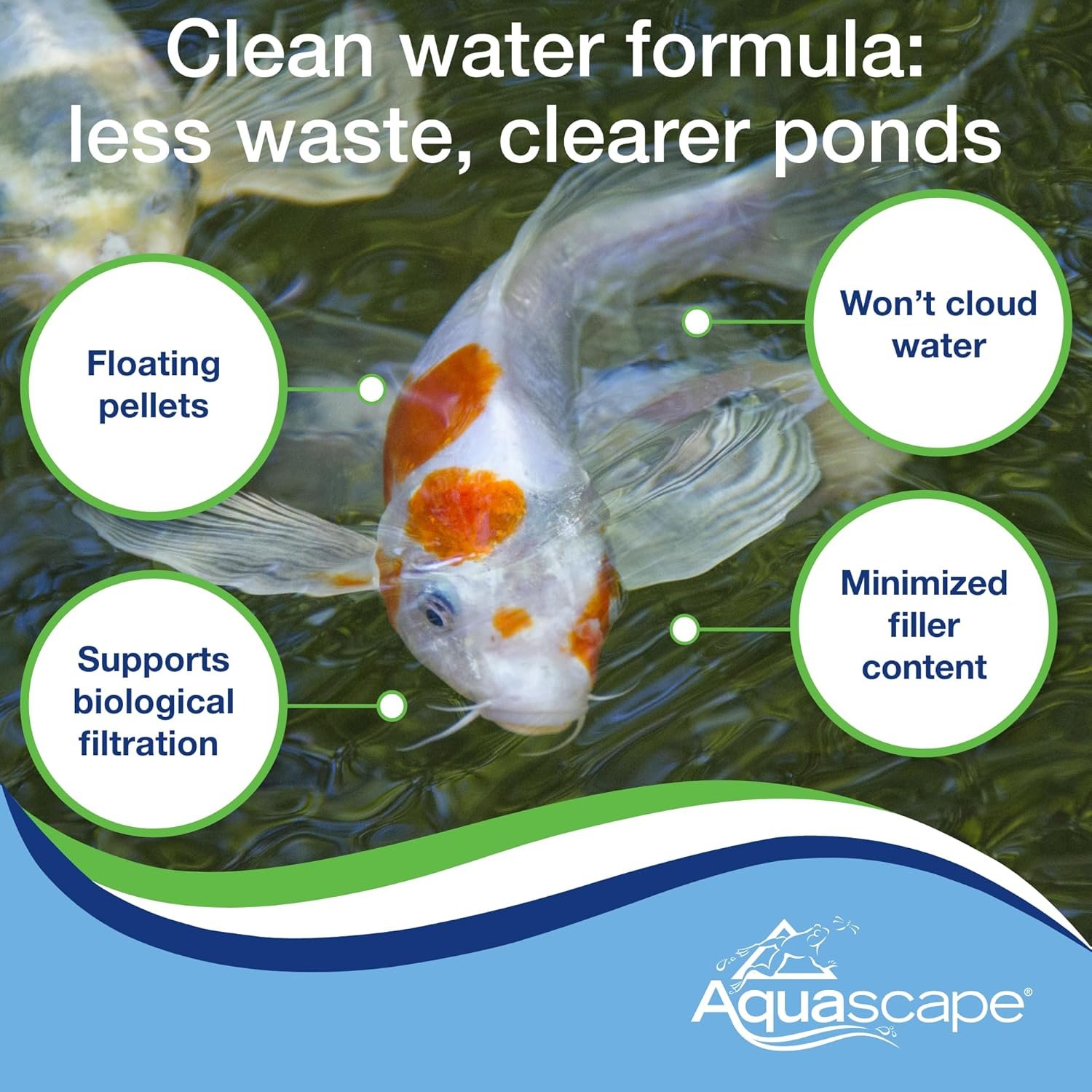 Specially formulated fish food provides koi and other pond fish the best possible nutrition while reducing waste and pond maintenance