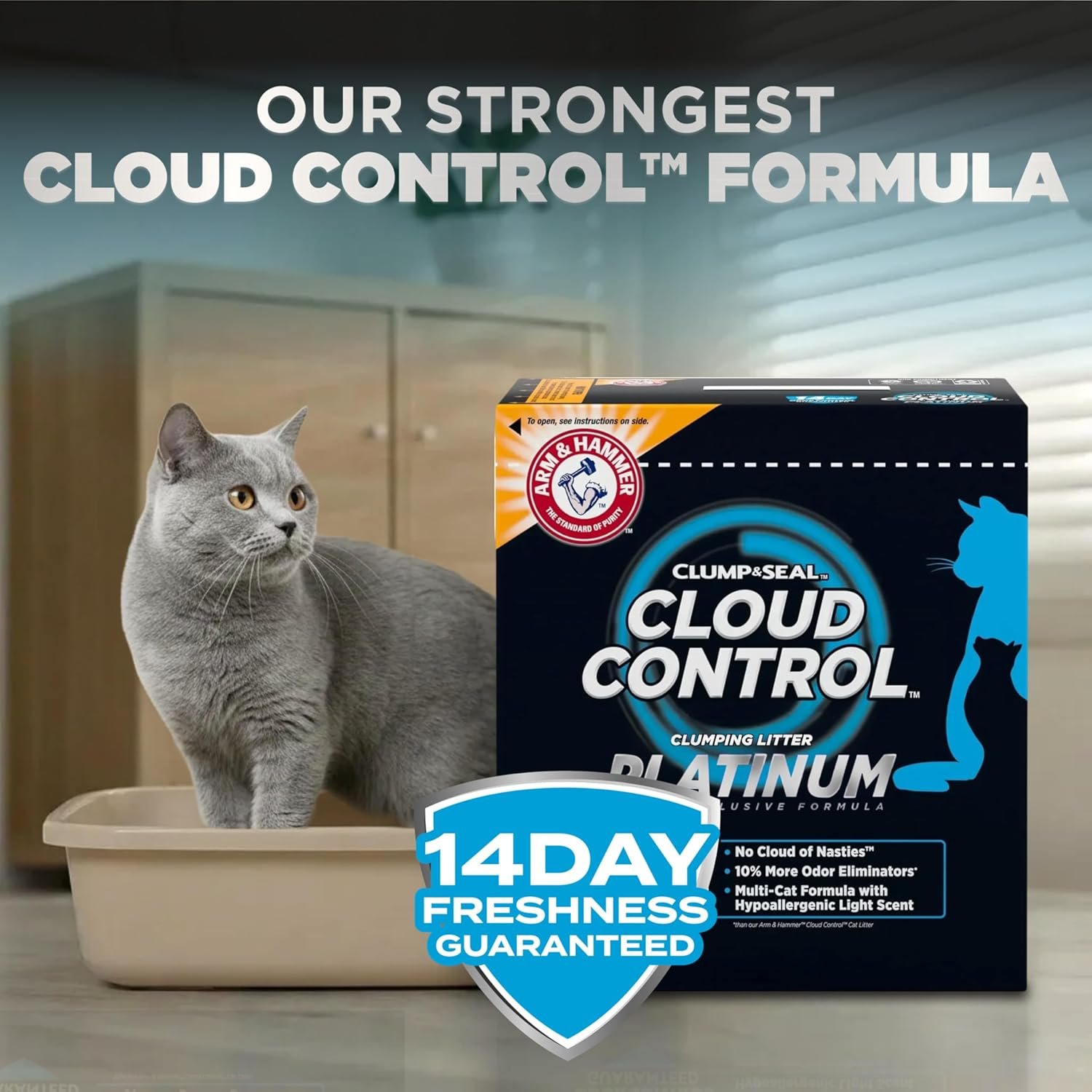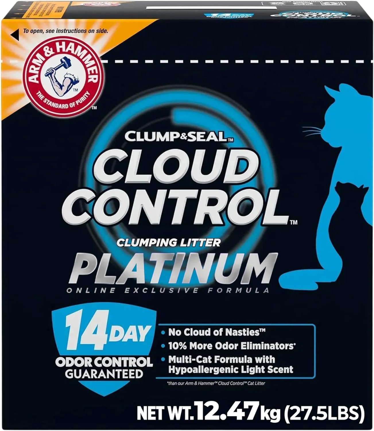 ARM & HAMMER Platinum Cat Litter, Cloud Control, Extra Strength with 14 Days of Odour Control, Multi-Cat Clumping Cat Litter with Hypoallergenic Light Scent, 12.47kg (Pack of 1)