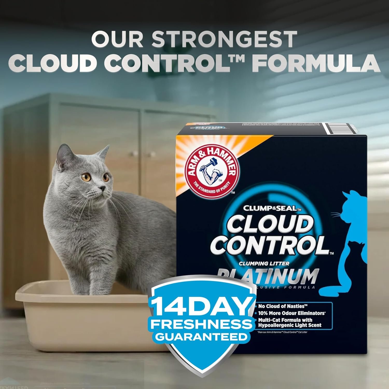 ARM & HAMMER Platinum Cat Litter Cloud Control, Extra Strength with 14 Days of Odour Control, Multi-Cat Clumping Cat Litter with Hypoallergenic Light Scent, Value Size 16.78kg (Pack of 1)