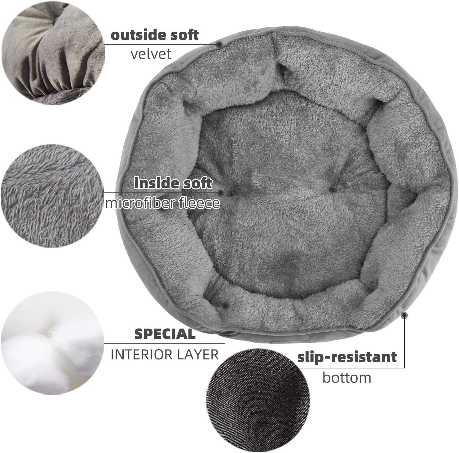 Comfortable: Our pet bed can not only provide a soft and comfortable bed, but also become your lovely home decoration. The round design creates a sense of security and provide head and neck support