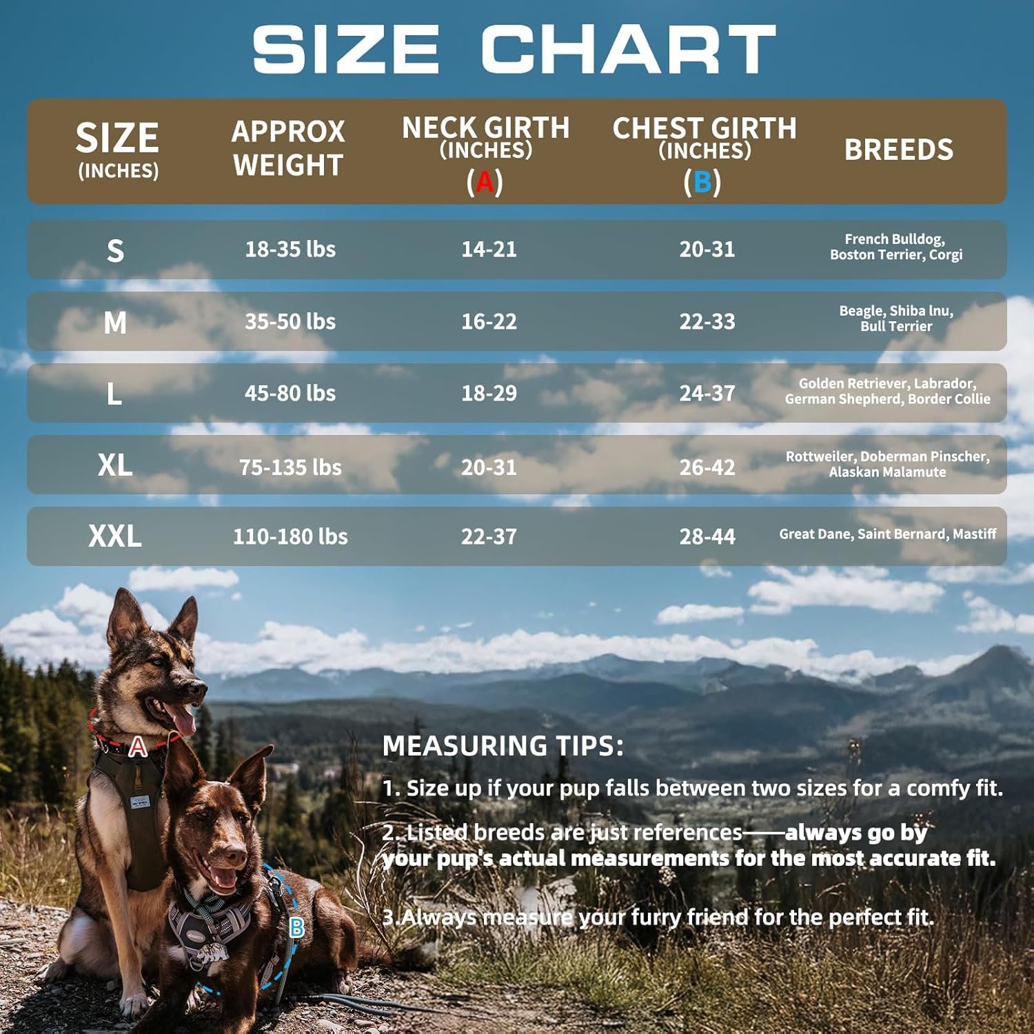 【Sizing Guide】Our dog harness offers four sizes to choose from. For a proper fit, please measure your dog before purchasing and check our sizing chart. We hope you have a pleasant shopping experience.