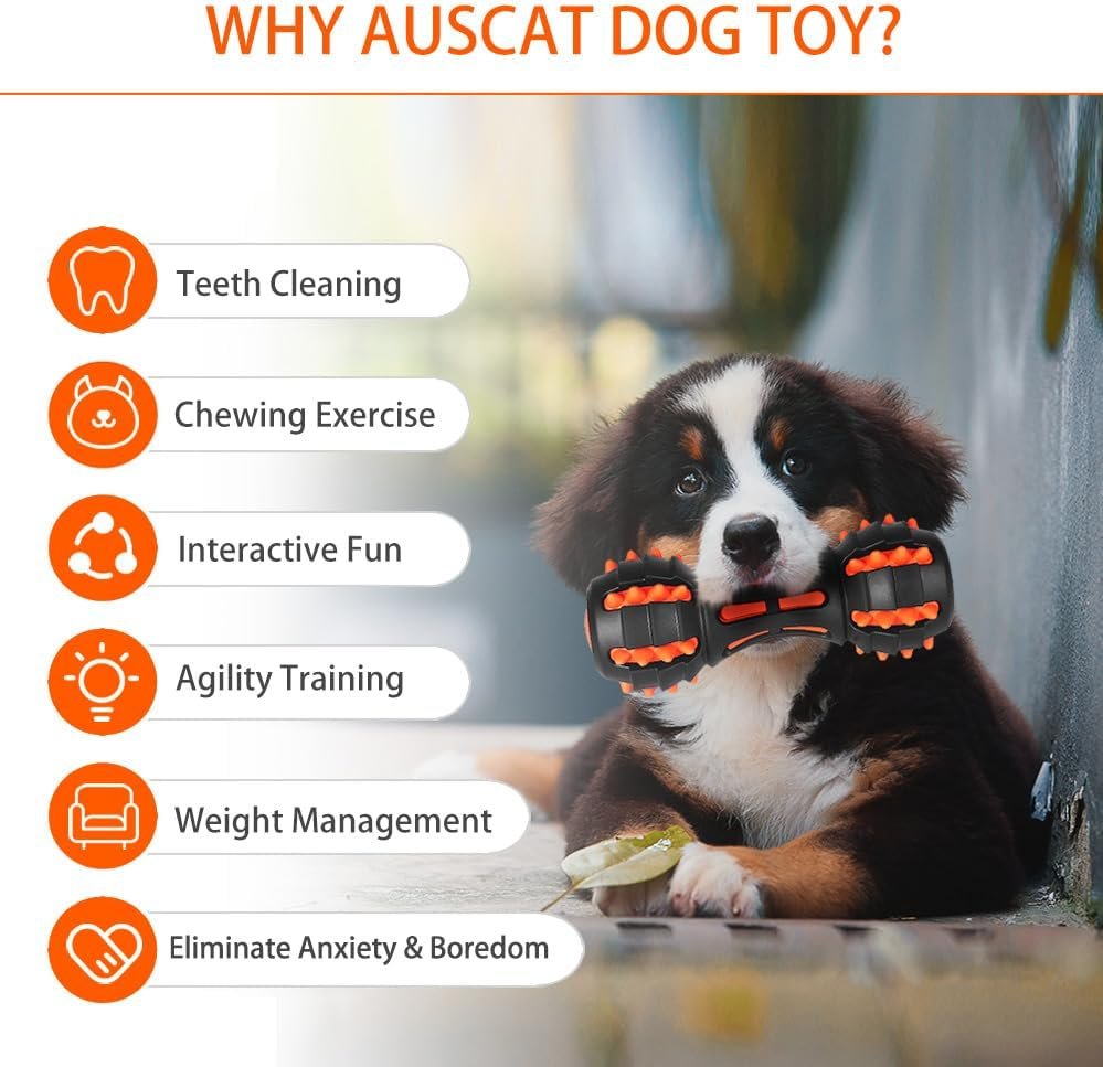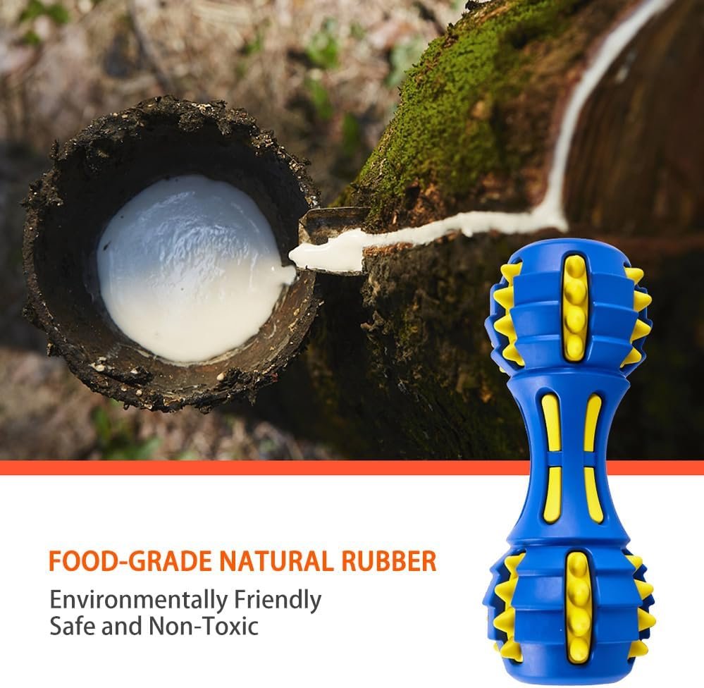 AUSCAT Teething Dog Toys, Durable Squeaky Dog Toys, Rubber Chew Toys for Dogs, Dumbbell Shape, Blue and Black