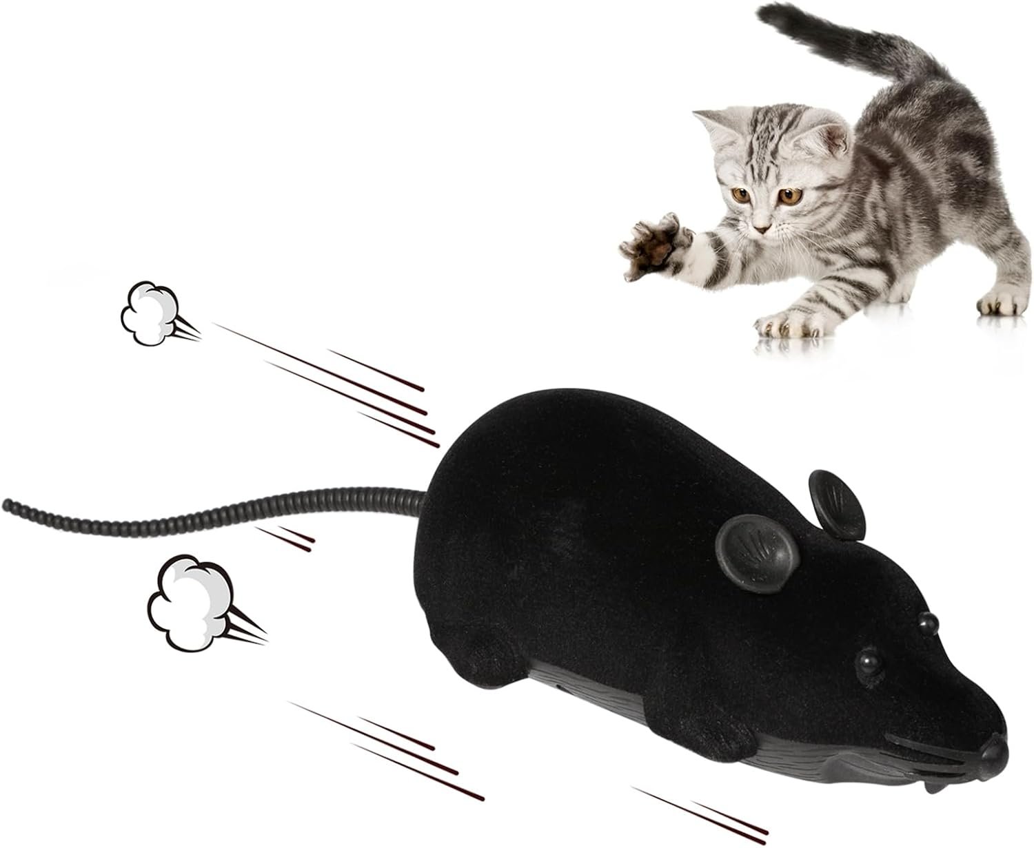 Auto Moving Mouse Cat Toy, Interactive Cat Toys Wireless Electronic Fake Mouse Rat Pet Toy Running Wheel Plush Rat Chasing Prank Toy for Cats Dogs Kids Novelty Gift By Greatstar (Black, No Controller)