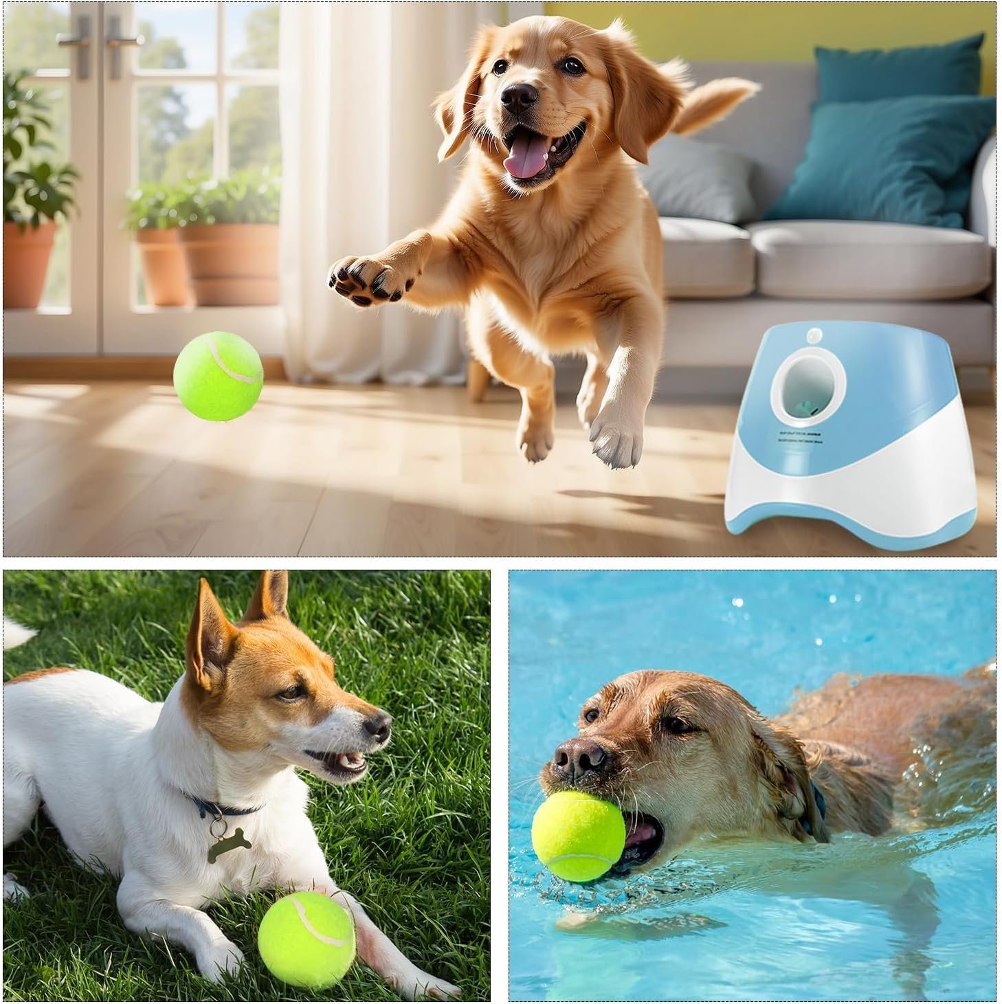 Ample Tennis Balls: Our tennis ball launcher for dogs comes with 6packs 2.3-inch ETPU tennis balls, perfect for continuous play. This dog ball launcher ensures your pet always has a ball on han,making playtime safe and enjoyable for your petite pup.
