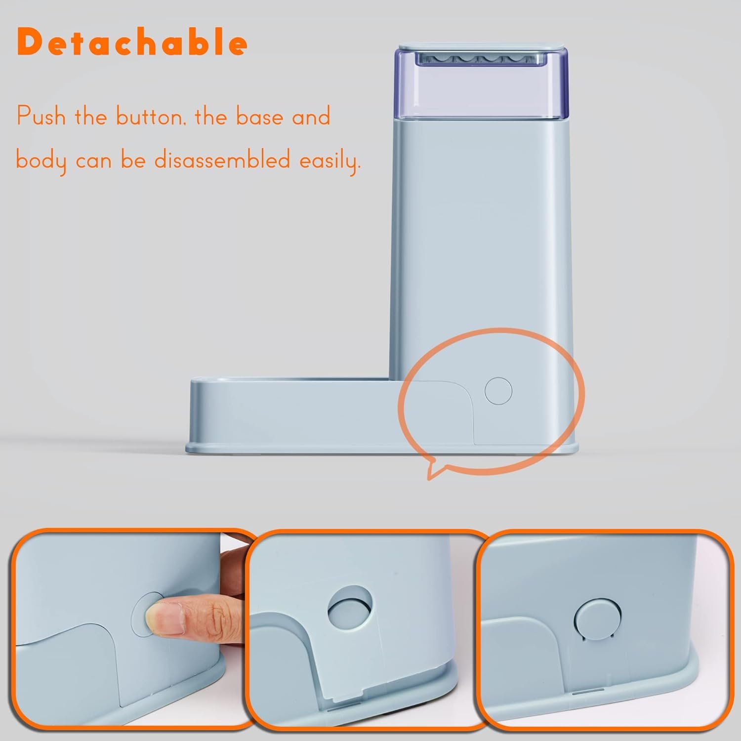 The body is easy to unscrew from the base of the dog feeder by pushing the round buckle of the two side, it is convenient for hand-washing.