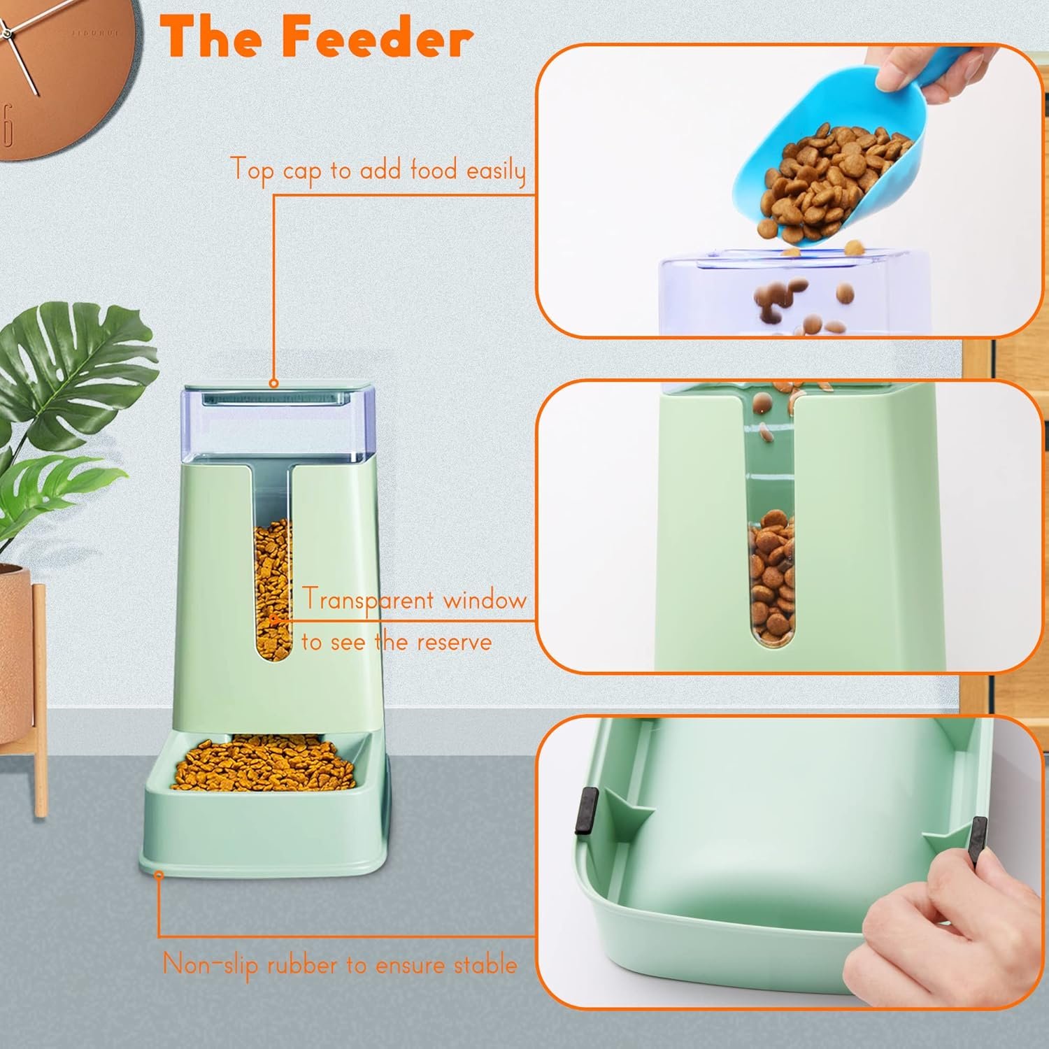 Automatic Pet Feeder Small&Medium Pets Automatic Food Feeder and Waterer Set 3.8L, Travel Supply Feeder and Water Dispenser for Dogs Cats Pets (Light Green)