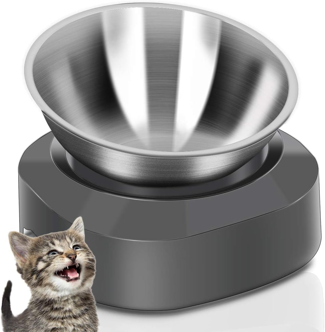 AYADA Raised Cat Food Bowl, Stainless Steel Cat Dish for Food Water Anti Vomiting Elevated with Stand Ergonomic Lifted Slanted Tilted 15 Angle Metal Single Kitty Kitten Wet Food Bowl Pet Bowl