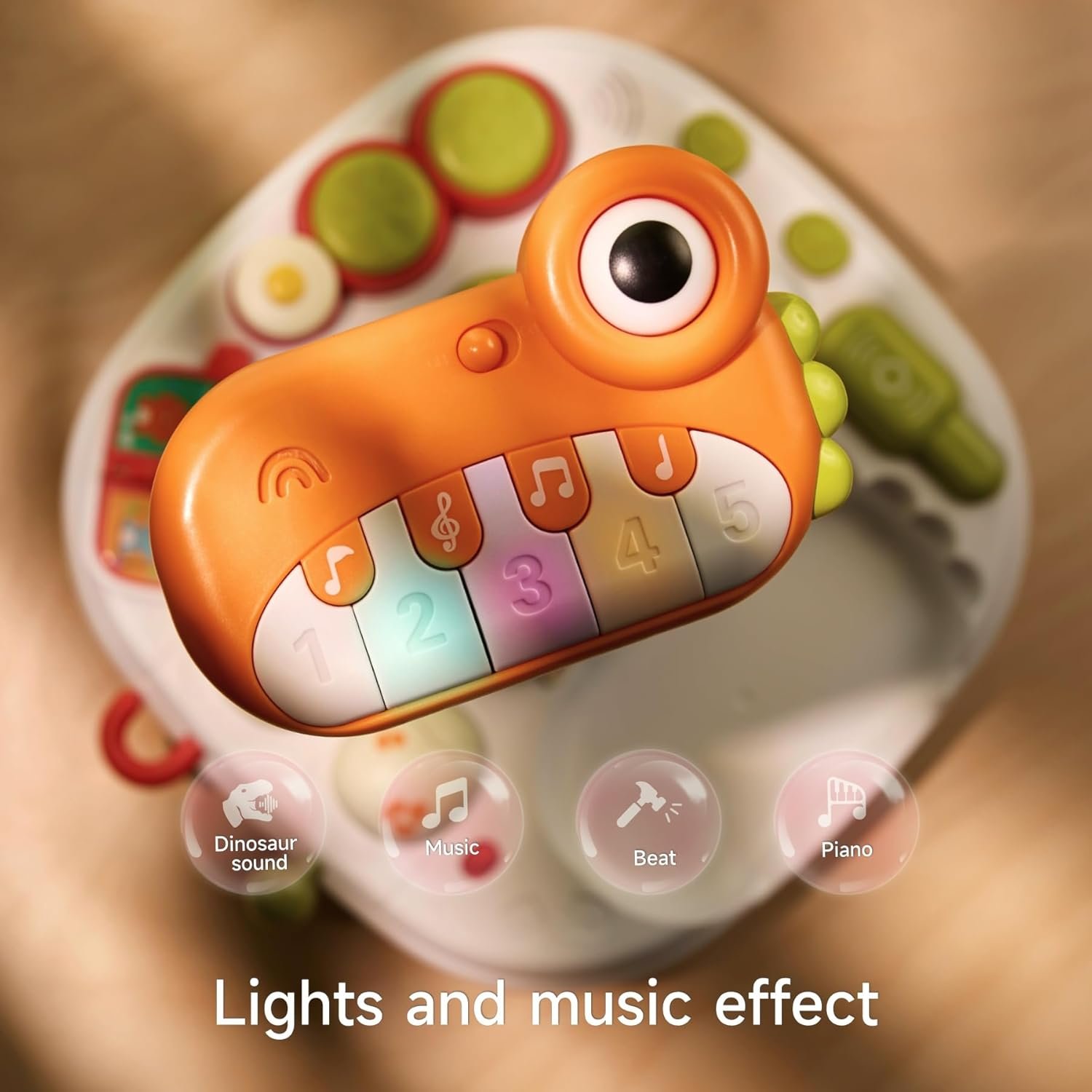 💖 Baby toys 3-in-1, toddler musical table toy can be transformed from a floor play toy to a standing baby activity table after installing the red legs, suitable for sit-to-stand baby. The small piano can be taken out as a separate toy. You can play the piano toy with 5 different modes (piano, names of fruits, dinosaur sounds, whack-a-mole game, music modes) by pressing the dinosaur eye.