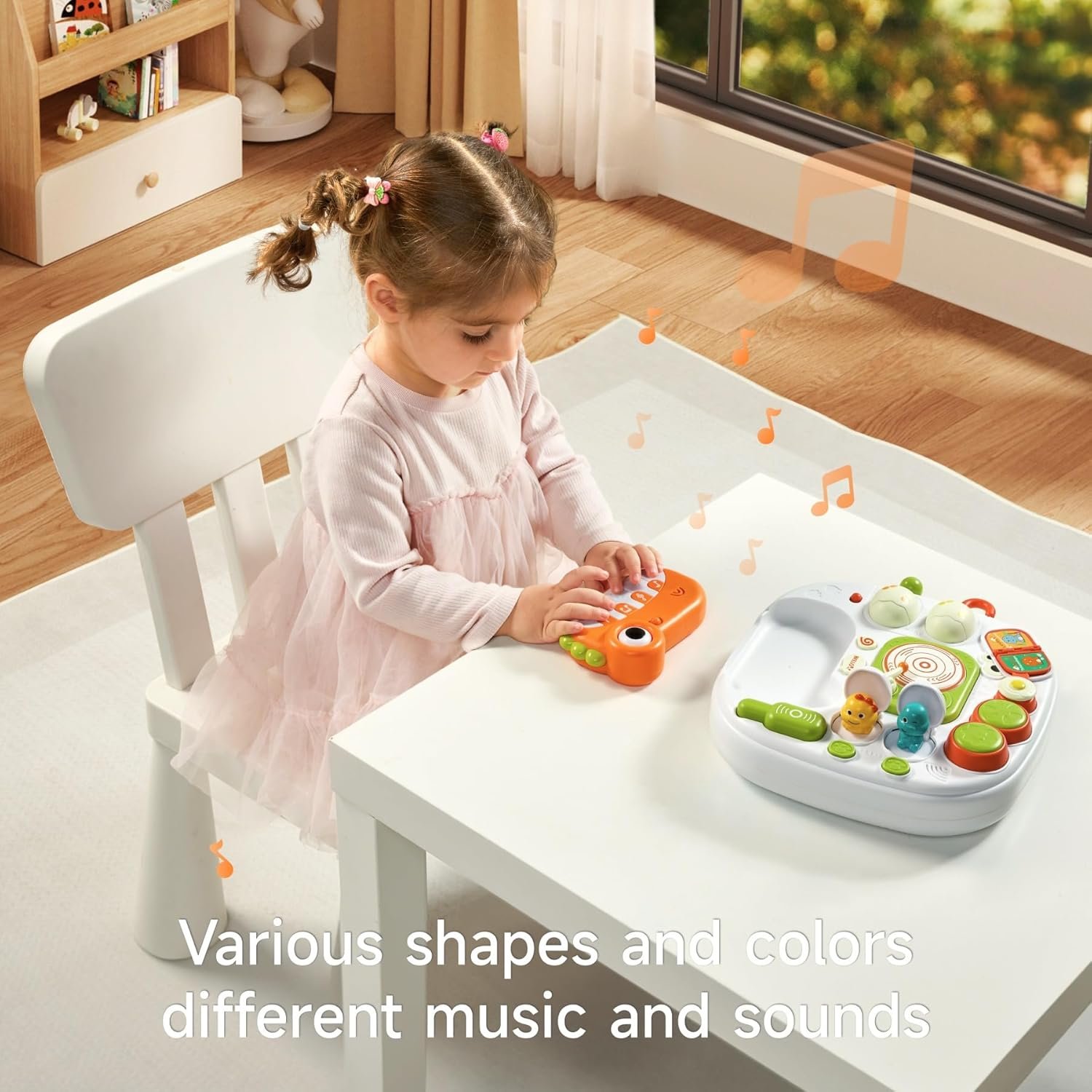 🎵 Early educational activity center toys, made of high-quality ABS plastics with smooth edges, this attractive baby play table ensures the safety and durability for your baby. It encourages fine motor skill development as babies press, pull and slap the various components. The size of this 12 months baby learning toy is approximately 9.4* 8.2 inches.