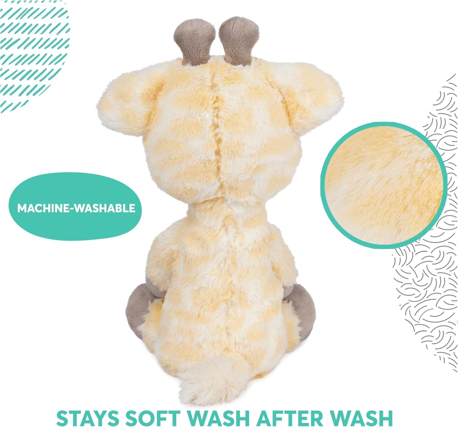 MODERN PLUSH GIRAFFE: This adorable 12″ stuffed giraffe features premium, irresistibly soft yellow-and-cream-colored plush, baby-safe embroidered details, and a slender silhouette with playfully floppy limbs.