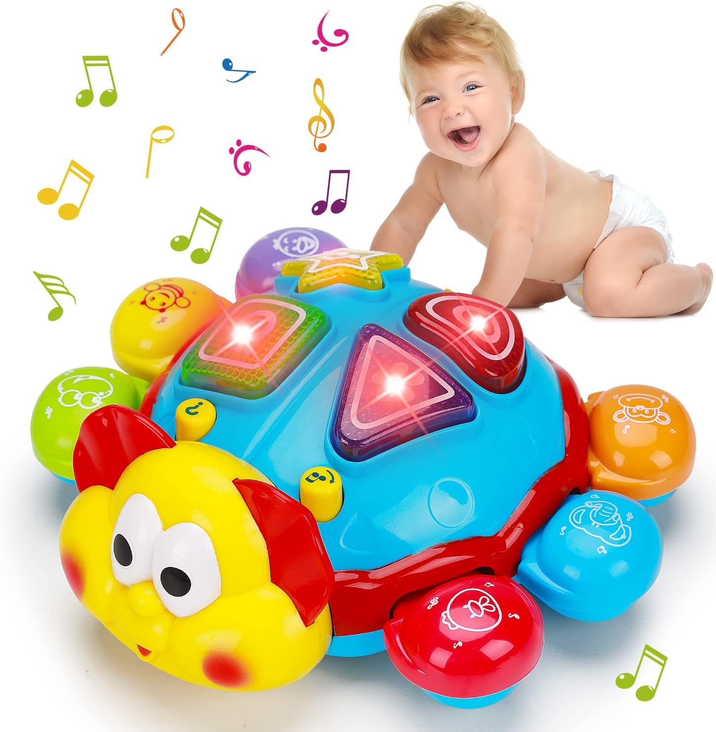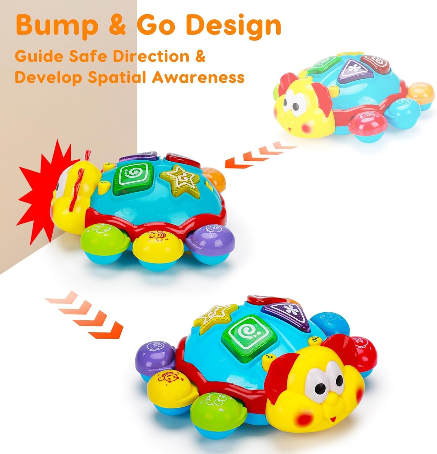 【Baby Crawling Toy】The ladybug crawling toys for babies 6-12 months can change directions to avoid obstacles automatically. The musical key can switch next modes. The ladybug crawling toys for babies 6-12 months can change directions to avoid obstacles automatically. The musical key can switch next modes. Great turtle crawling toys for baby infants 6-12 months that are working on crawling & walking, baby toys 12-18 months, baby toys 3-6 months.