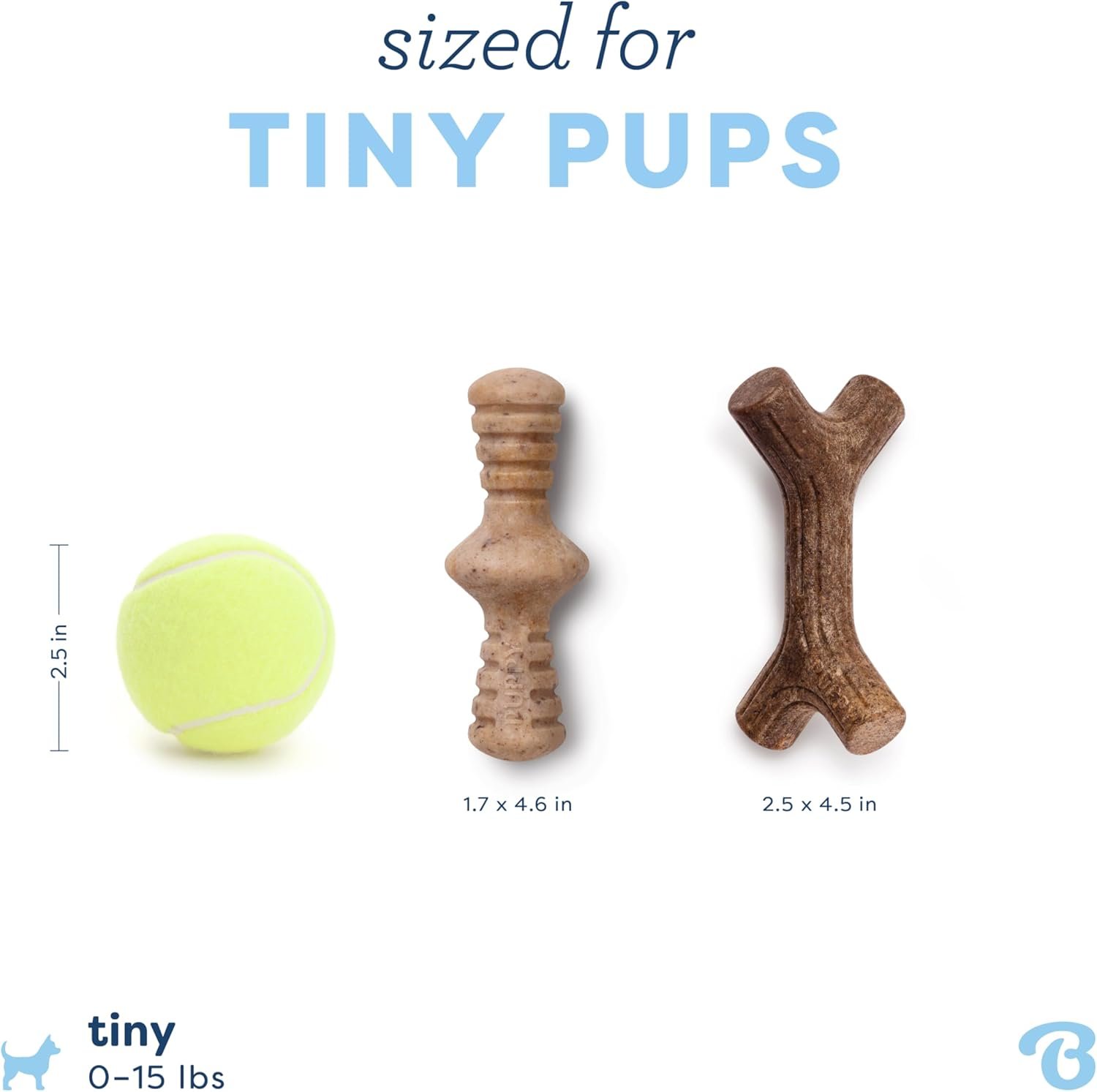 DURABLE, WITH A LITTLE GIVE – Benebones are for determined chewers. Our puppy line is durable and quite firm to the human touch, but is a teeny bit more forgiving for teething pups.