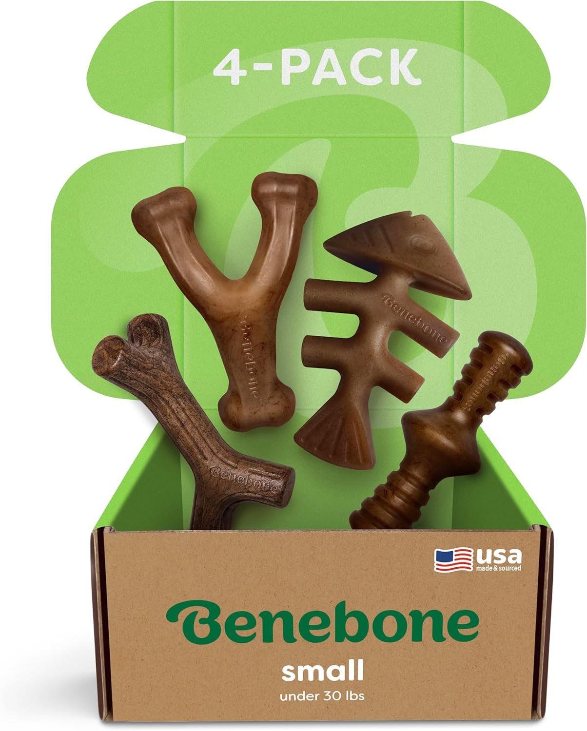 Benebone Small 4-Pack Dog Chew Toys for Aggressive Chewers, Made in USA, 30lbs and Under