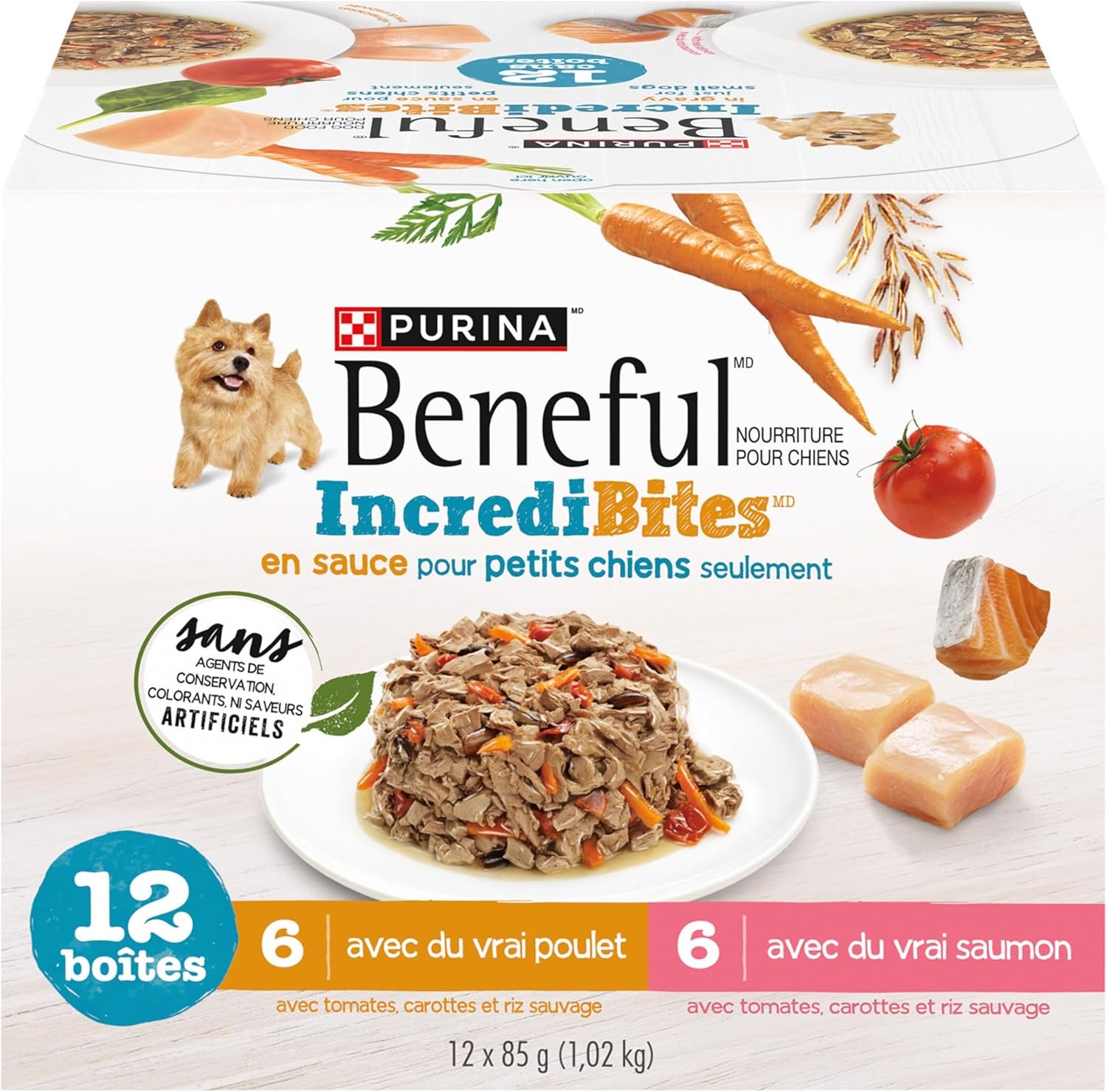 Beneful Incredibites Wet Dog Food for Small Dogs, Real Chicken & Salmon in Gravy Variety Pack – 85 g Can (12 Pack)