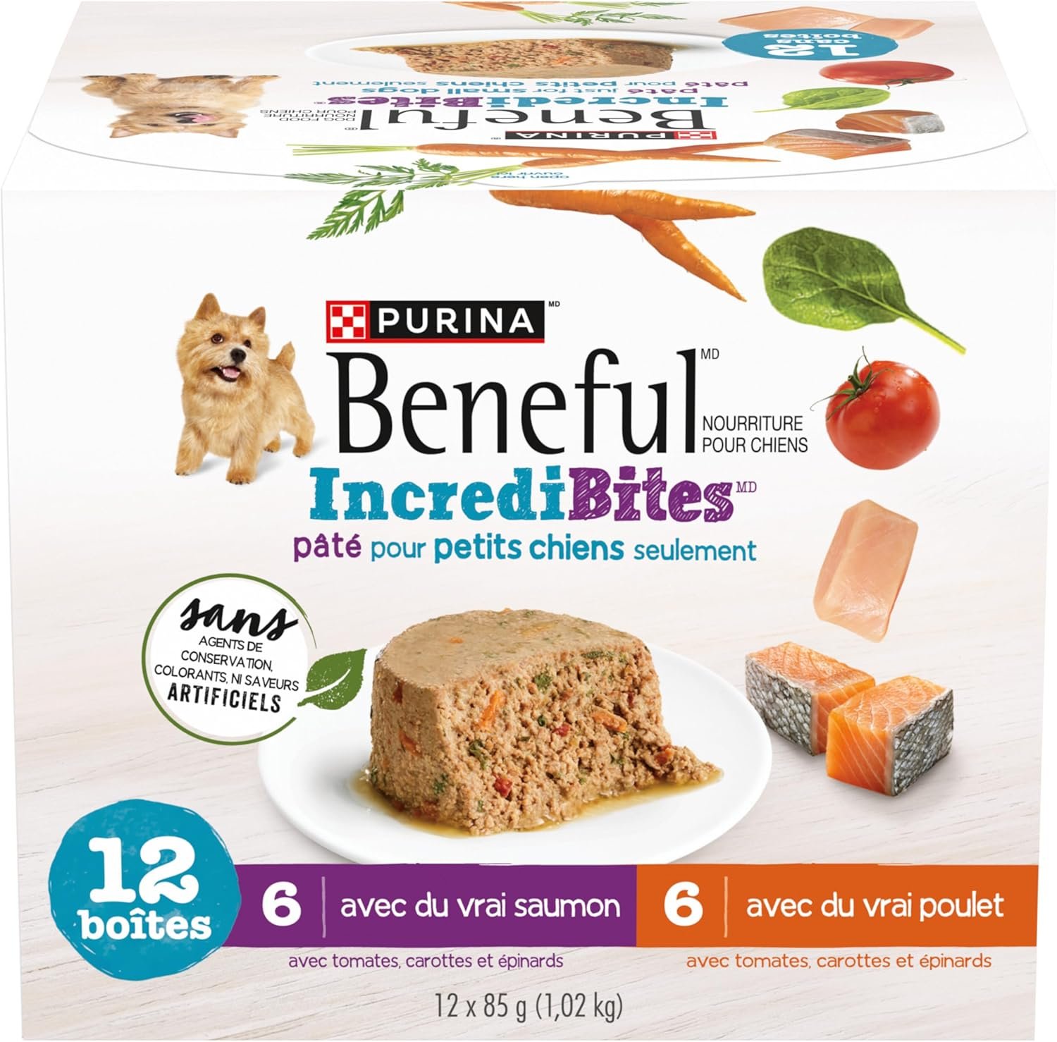 Beneful Incredibites Wet Dog Food for Small Dogs, Real Chicken & Salmon Pâté Variety Pack – 85 g Can (12 Pack)