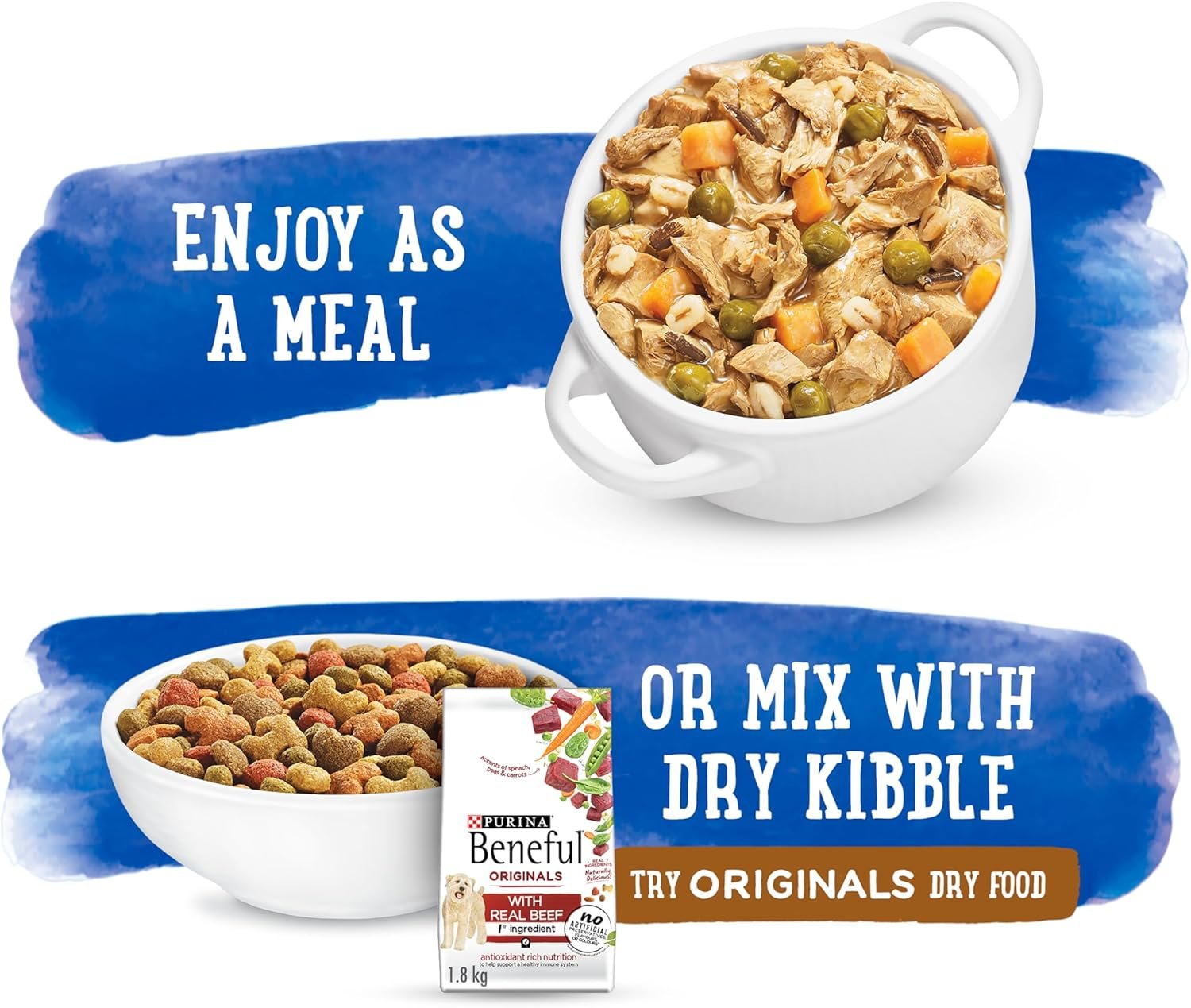 Beneful Prepared Meals help keep your dog healthy and happy with delicious meaty chunks, wholesome grains, savory veggies, and no artificial colors, flavours, or preservatives. Your dog will love sinking his teeth into this fully prepared blend, and you’ll love being able to re-seal the tub — if there are any leftovers that is.
