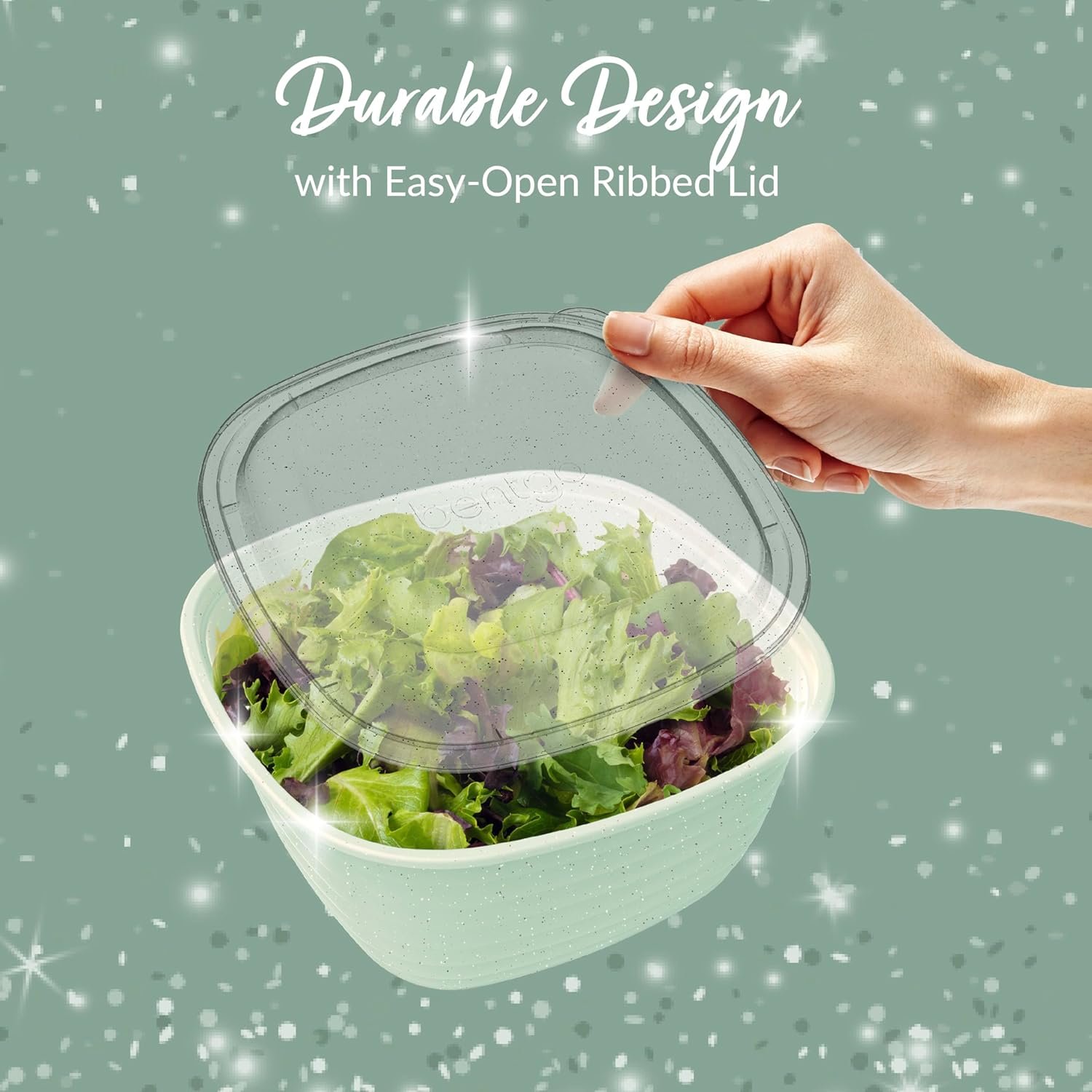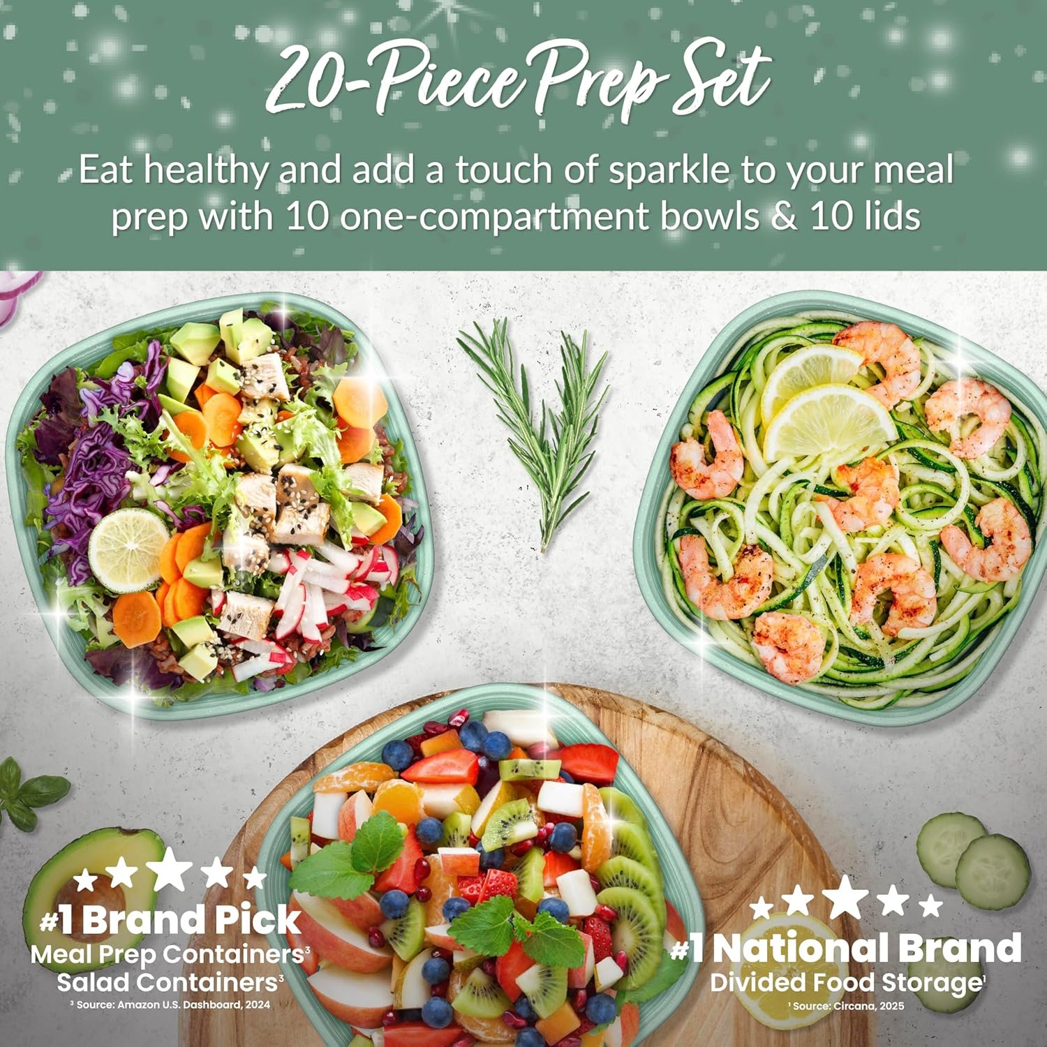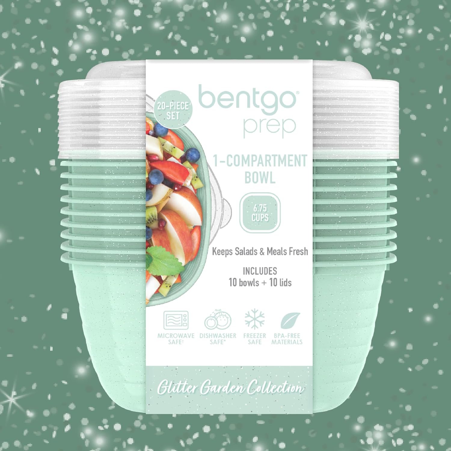 Bentgo Prep – 1-Compartment Bowls with Custom Fit Lids – Reusable, Microwaveable, Durable, PFAS & BPA-Free, Freezer and Dishwasher Safe Meal Prep Food Storage – 10 Bowls & 10 Lids (Sage Leaf Glitter)