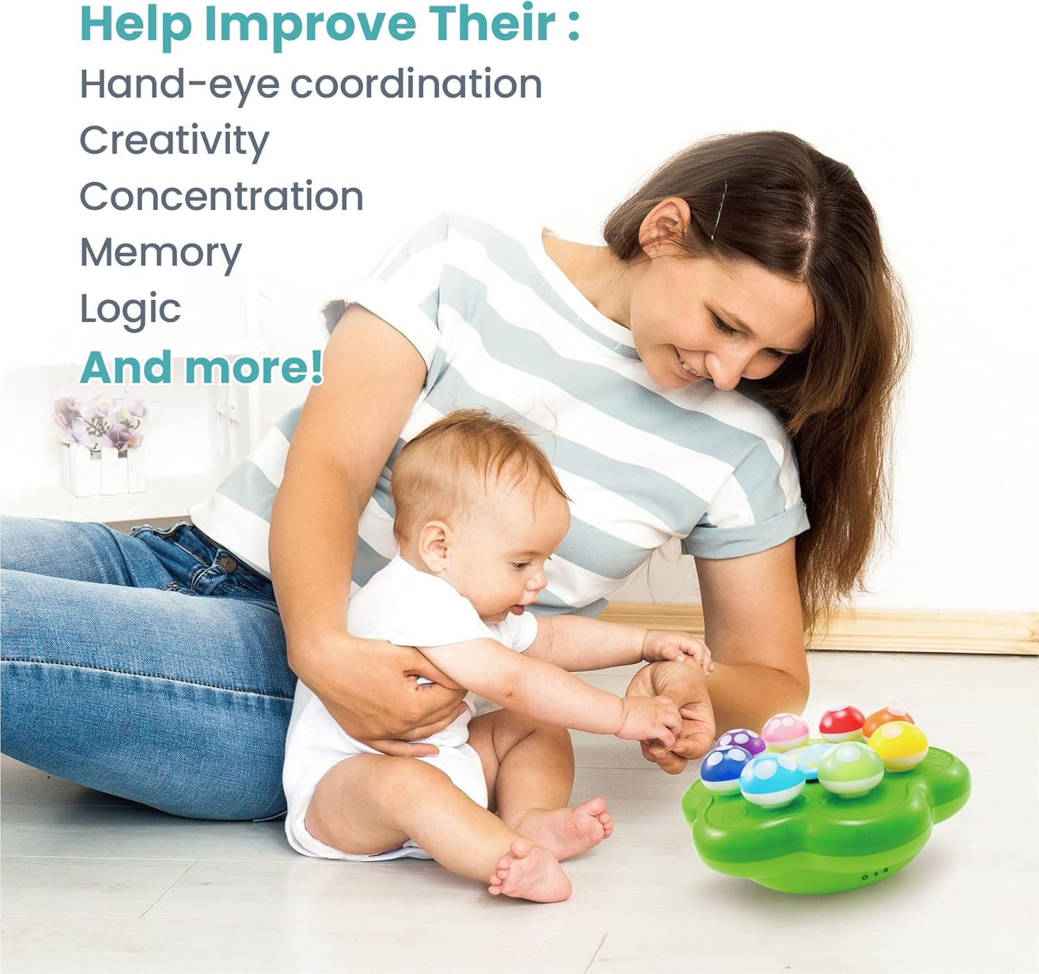 FUN MEMORY GAMES FOR YOUR LITTLE ONE – Follow the light-up patterns on the colorful mushrooms! As you progress, the patterns get longer and more challenging—perfect for sharpening memory skills.