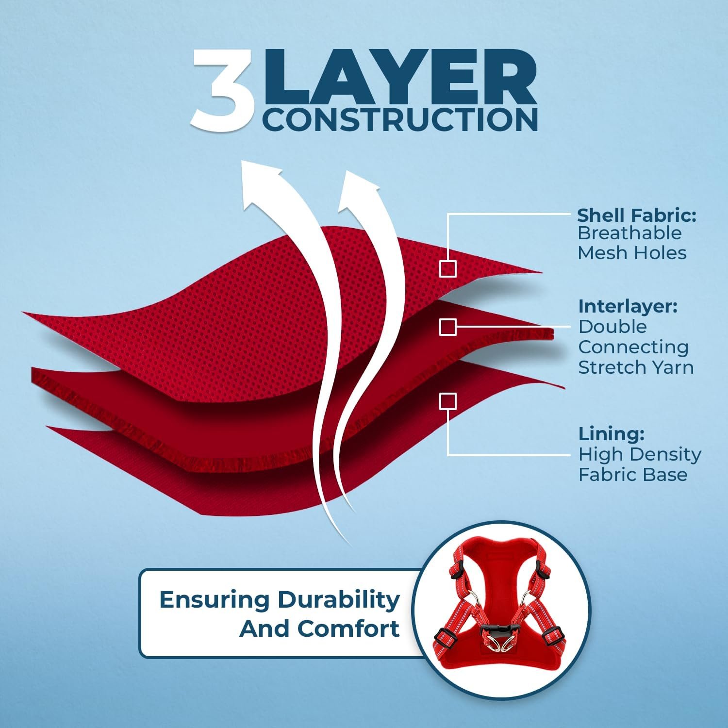Designed for safety: fitted with a strong buckle and Heavy duty double D-rings, this safety Harness for dogs greatly reduces the risk of your pup breaking free