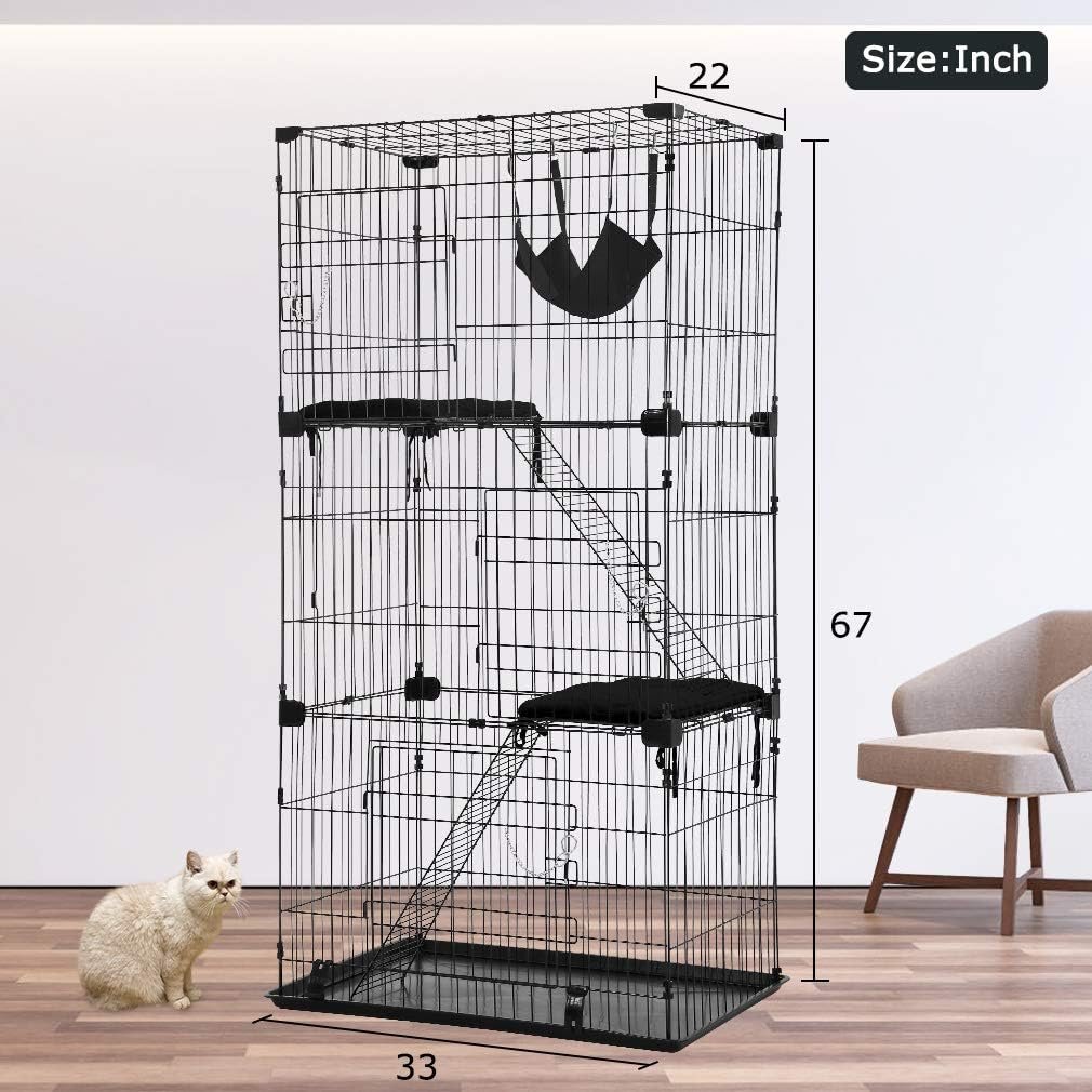 BestPet 3-Tier 67 Inch Cat Cage Enclosre Cat Crate Ferret Cage Cat Kennel Cat Playpen with Free Hammock 3 Cat Bed 3 Front Doors 2 Ramp Ladders Perching Shelves