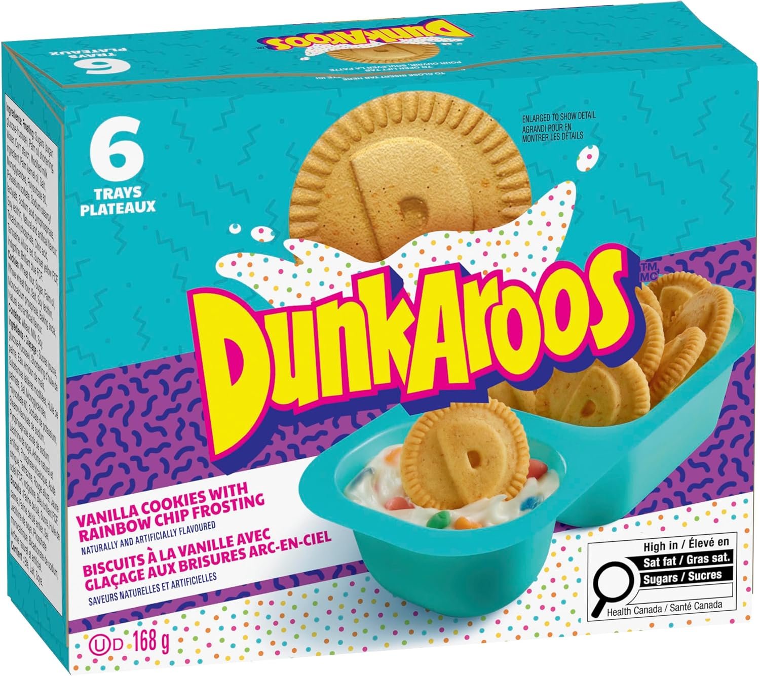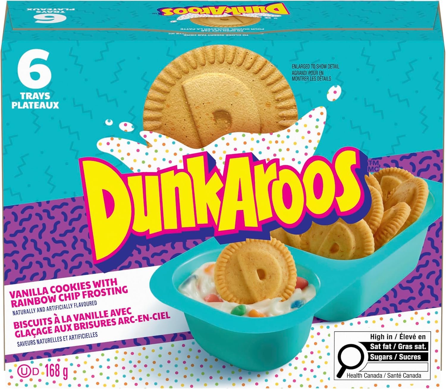 That was THEN. This is NOW. The snack you loved to dunk in the 90’s is back. You asked and we answered. Your favourite 90’s snack is available in Vanilla Cookies and Vanilla Frosting with Rainbow Sprinkles. Dunkaroos are an epic frosting and cookie dunking duo and are a nostalgic snack the entire family will love. The perfect snacks or lunch box desserts, these individually wrapped treats are easy to take with you on the go. The convenient snack packs make it easier than ever to take on the go, whether to the park or on the way home from school. An excellent addition to your weekly groceries, Dunkaroos are a slam-dunk treat perfect for anyone looking for a fun and portable snack. Contains six cookie packs in total, each with frosting.