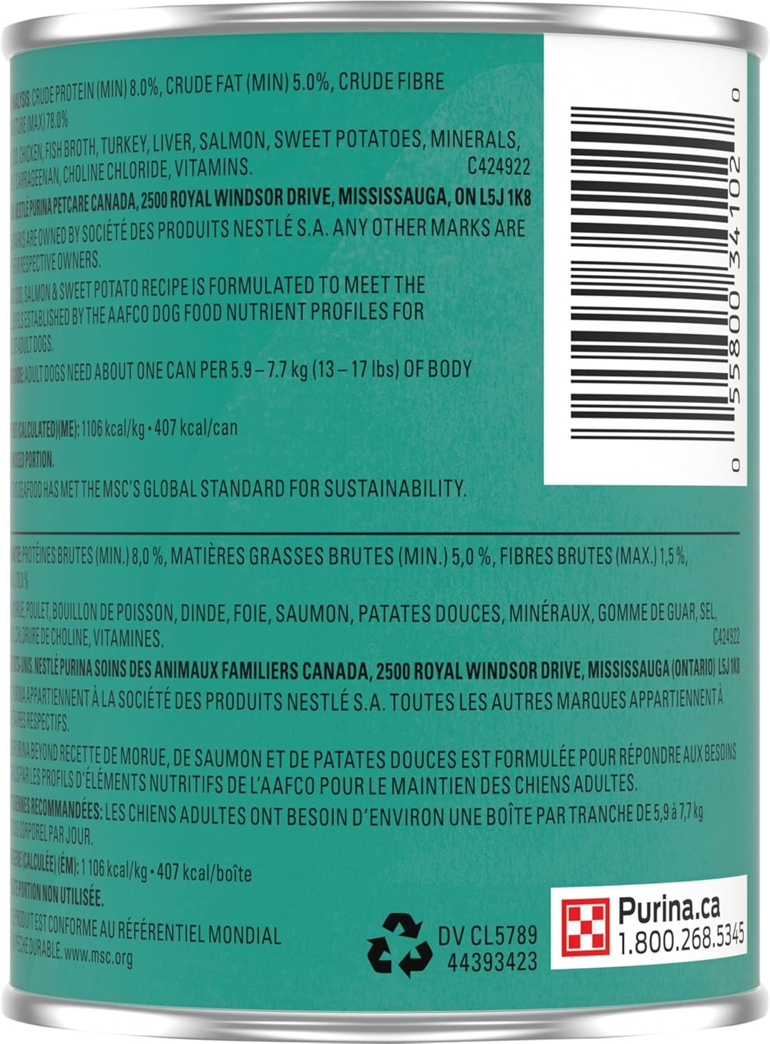 Beyond Natural Wet Dog Food, Alaskan Cod, Salmon & Sweet Potato Ground Entree – 368 g Can (12 Pack)