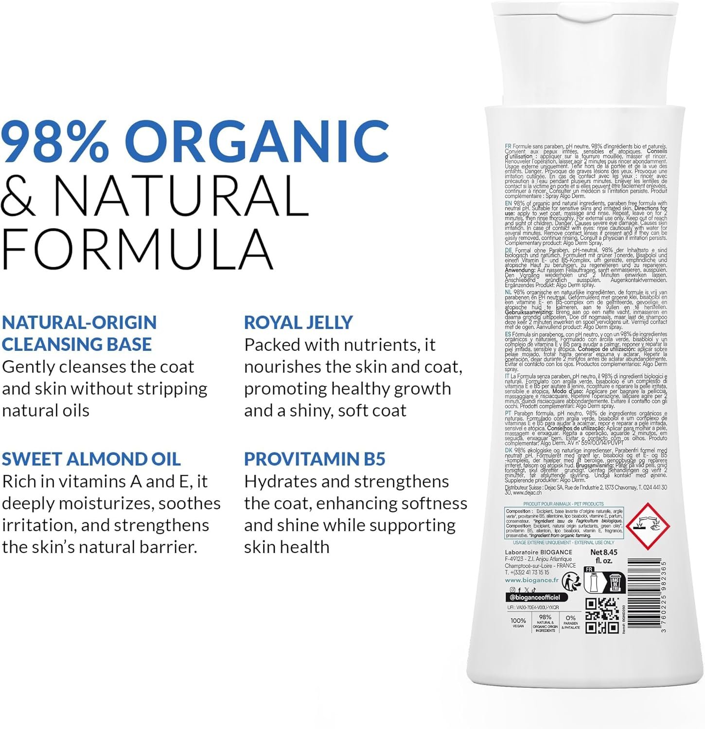 Be the first to review “Biogance 2-in-1 Dog Shampoo and Conditioner, Enriched with Sweet Almond Oil and Royal Jelly (250ml), Nourishing and Hydrating for All Coat Types, Organic Ingredients, Made in France”