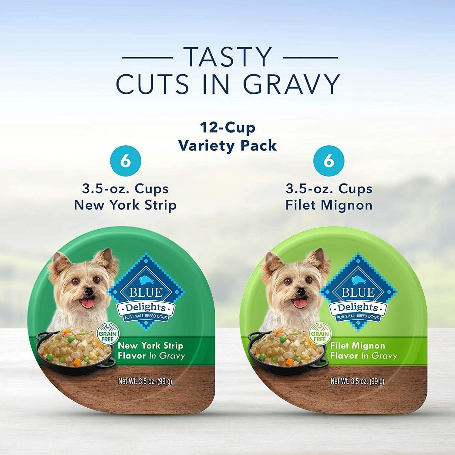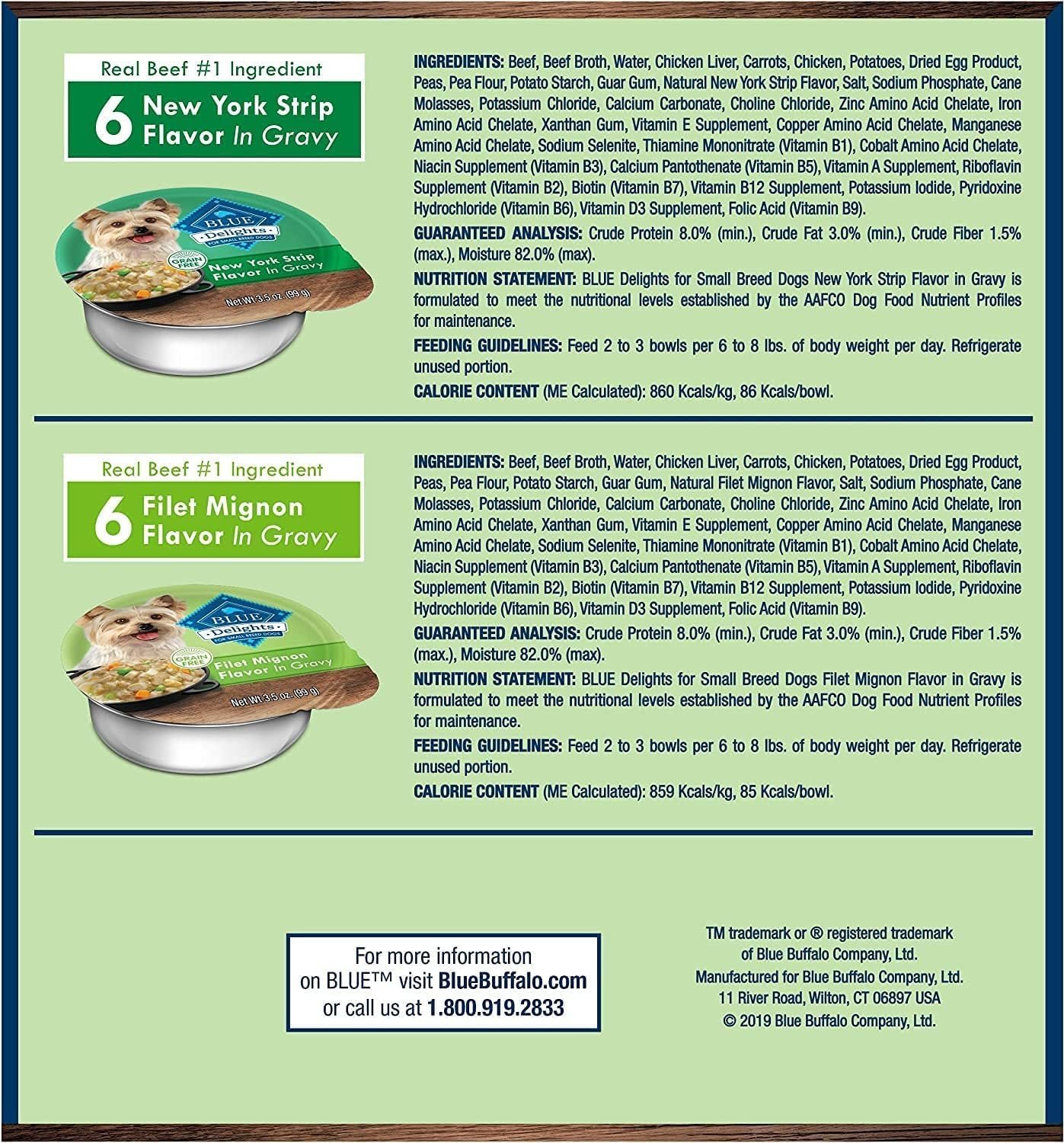 Blue Buffalo Delights Natural Wet Dog Food Filet Mignon in Gravy/NY Strip in Gravy 3.5 oz. Cup (Case of 12)