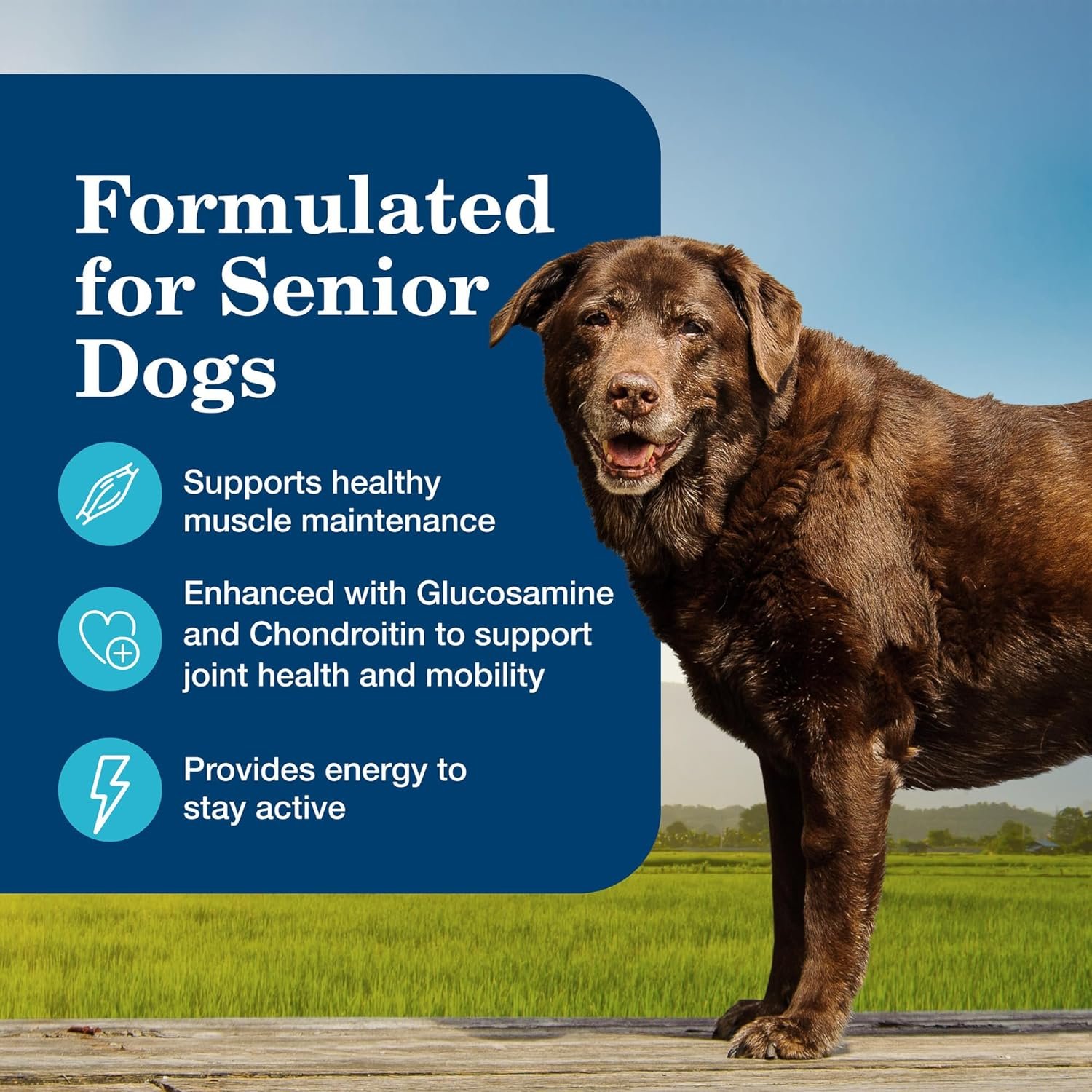 When it comes to making tails wag, nothing does it better than BLUE Homestyle Recipes. Made with real chicken as the first ingredient, plus garden fruits and veggies, this recipe is packed with the finest natural ingredients and enhanced with vitamins and minerals. Plus, it’s formulated to support the nutritional needs of senior dogs. This recipe contains glucosamine and chondroitin to support joint health and mobility in older dogs.