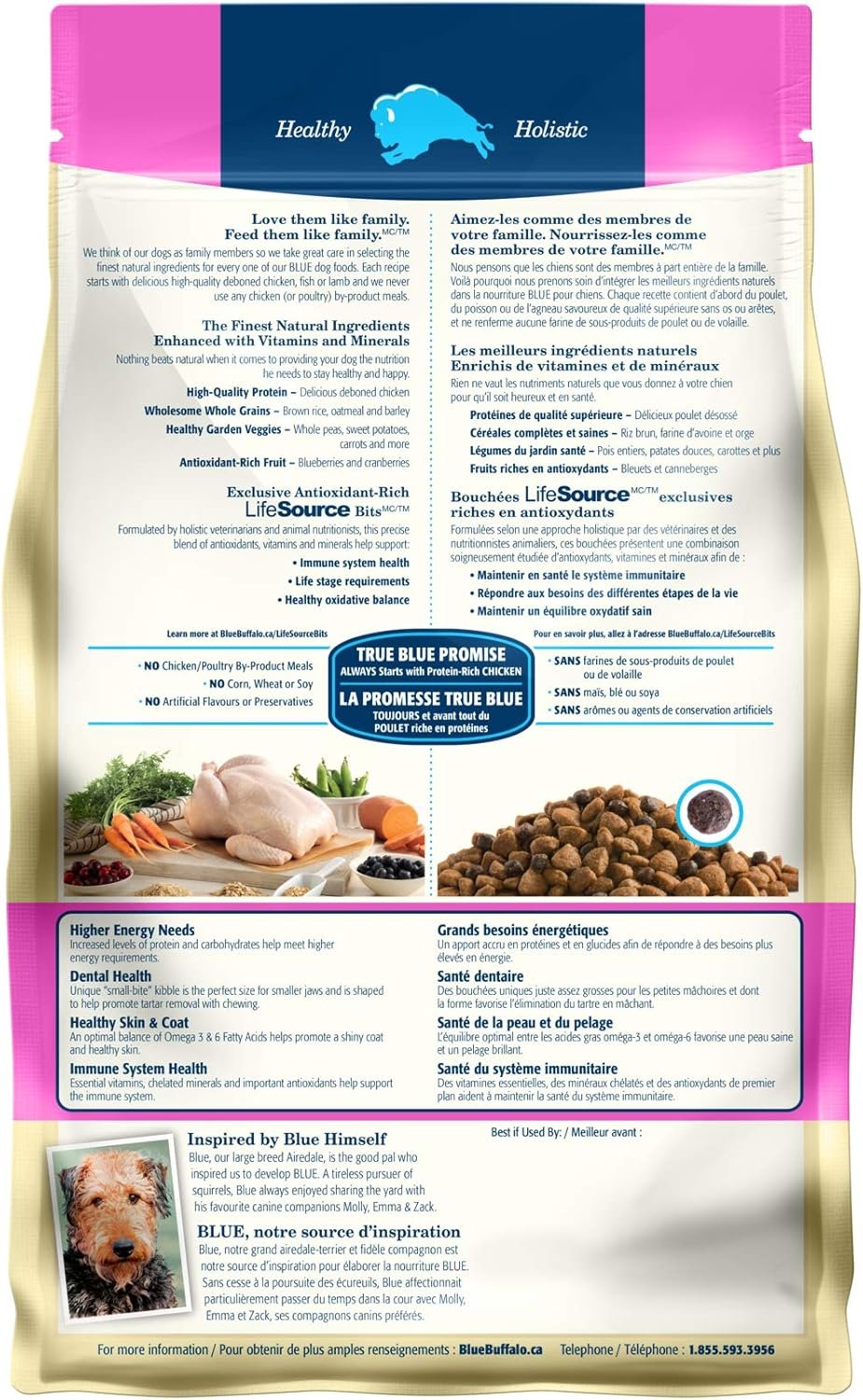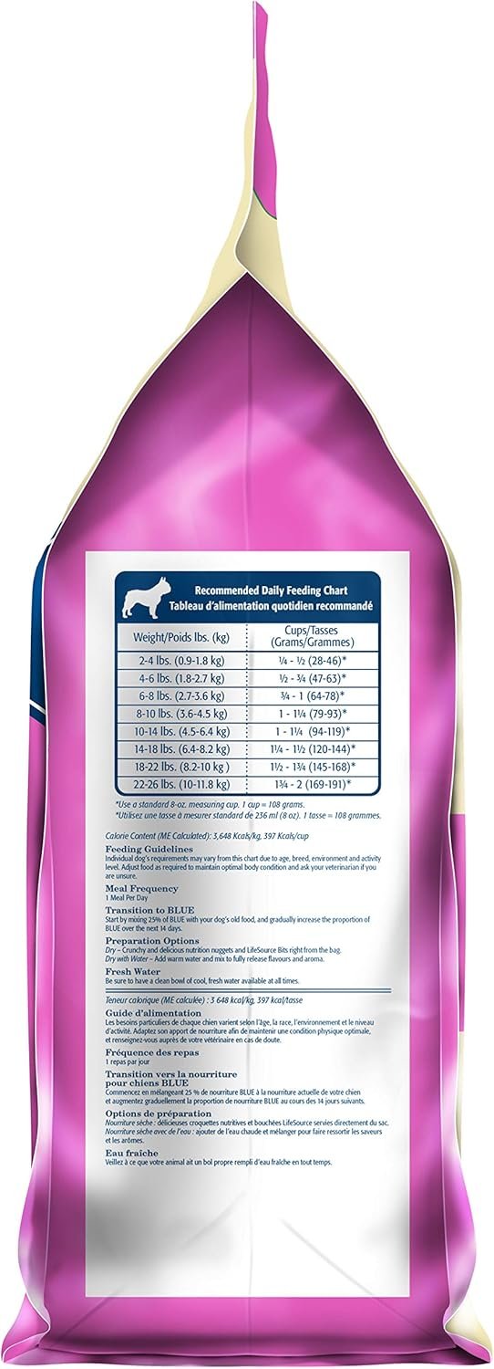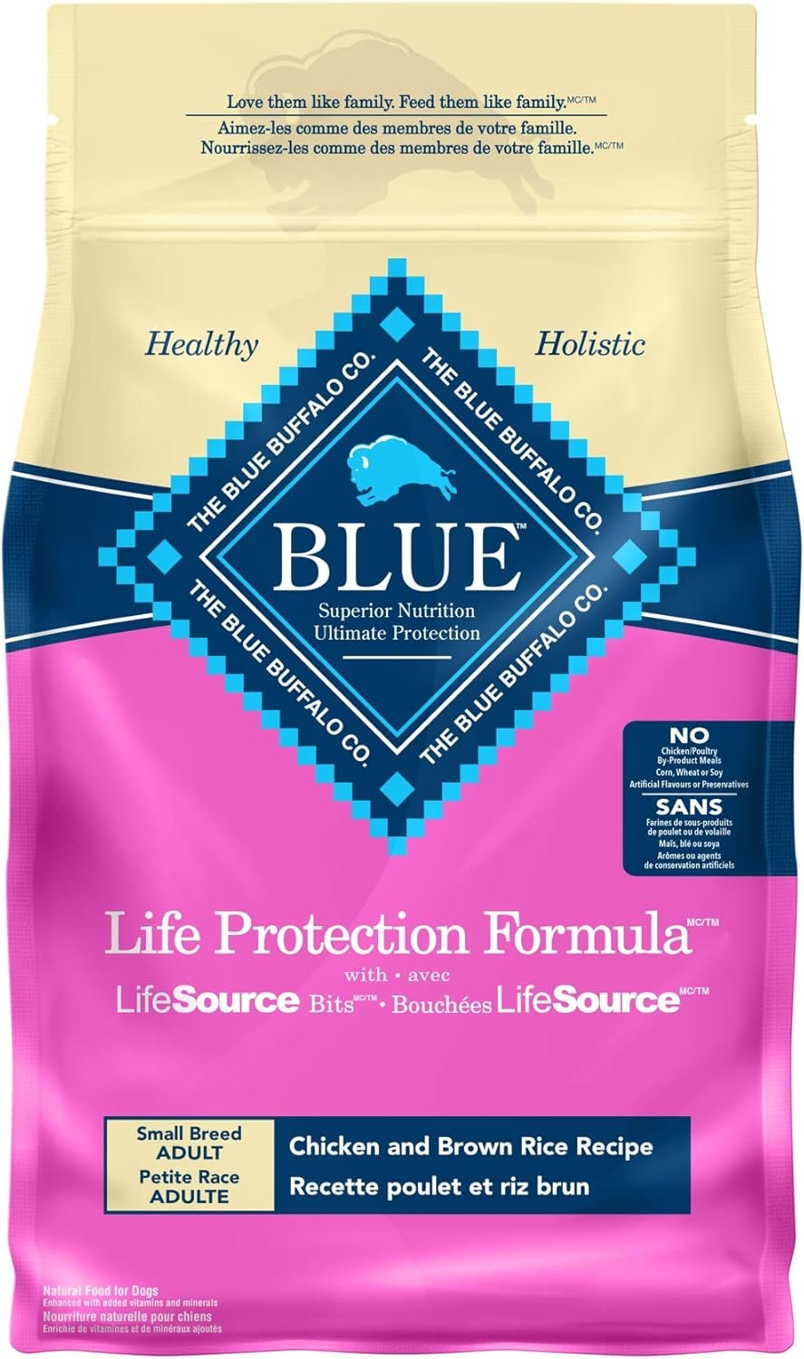 Product 1: SMALL BREED DOG FOOD: Specially formulated for the wellness of adult small breed dogs, BLUE Life Protection Formula Small Breed dry dog food contains increased levels of protein and carbohydrates to meet the energy needs of smaller dogs with a kibble size ideal for smaller jaws.