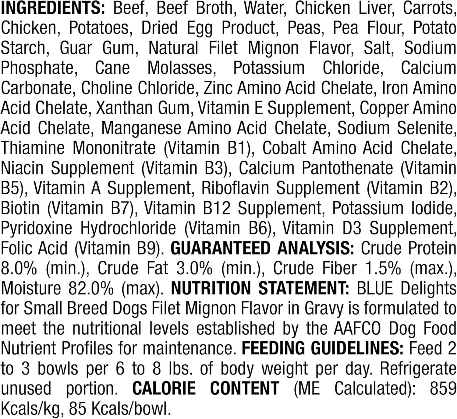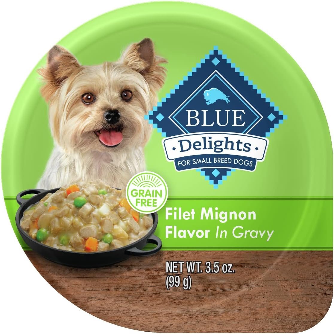Blue Buffalo Delights Natural Adult Small Breed Wet Dog Food Cups, Filet Mignon Flavor in Hearty Gravy 99g (Pack of 12)