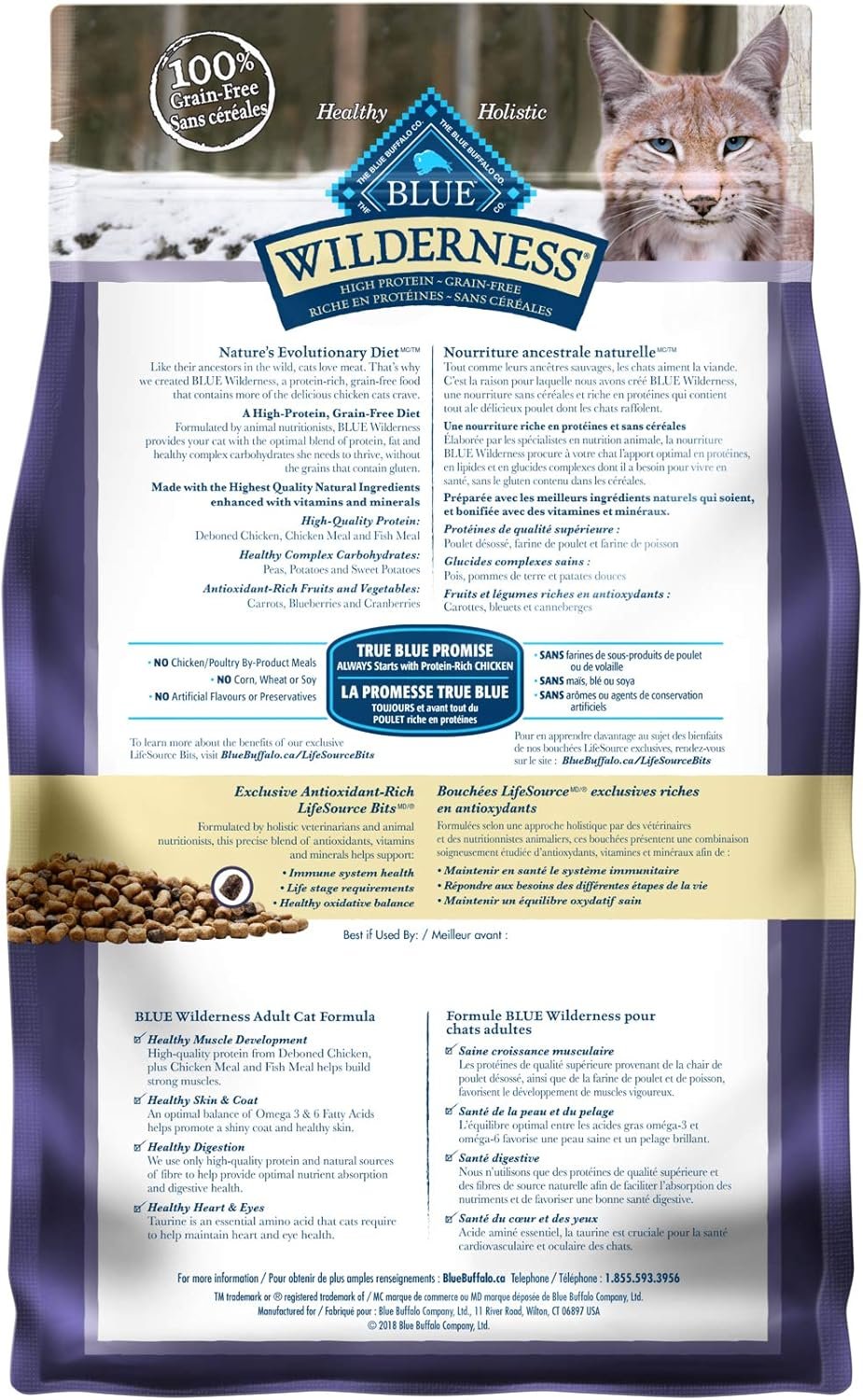 Inspired by the diet of the lynx, a tireless and legendary hunter, BLUE Wilderness is a protein-rich, grain-free food that contains more of the delicious meat cats love. BLUE Wilderness is a product of the Blue Buffalo company. Based in the United States, Blue Buffalo makes premium-quality pet foods featuring real meat, fruit and vegetables.