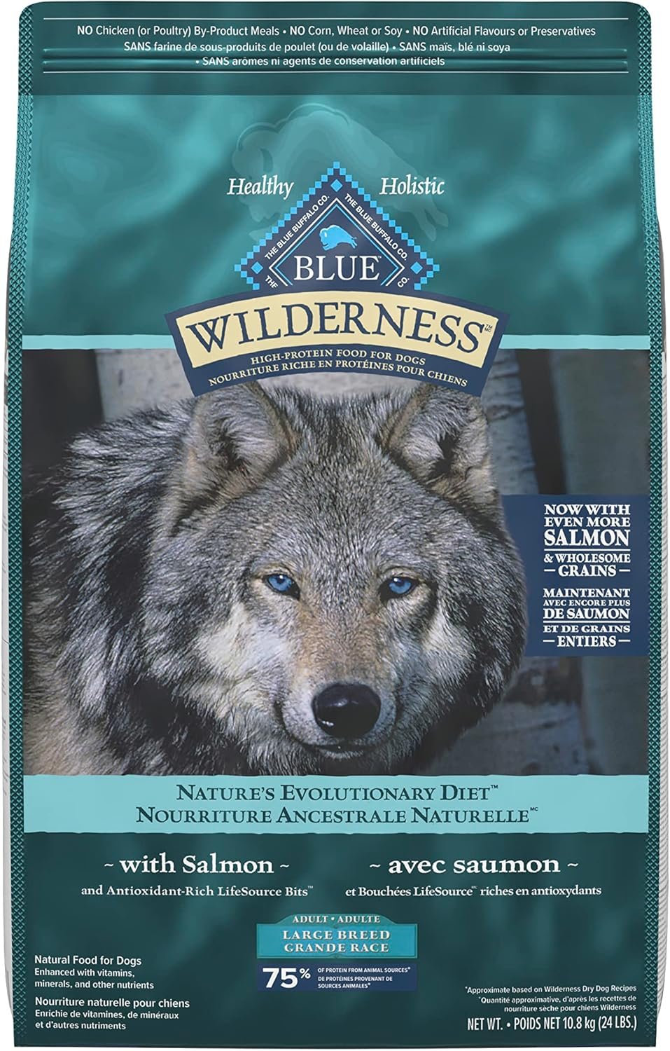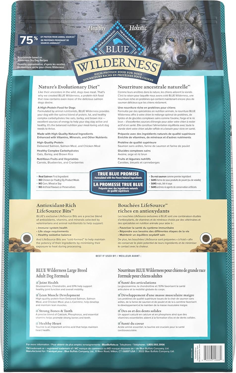 Blue Buffalo Wilderness More Meat & Wholesome Grains Natural Dry Dog Food, Large Breed Salmon 24lb