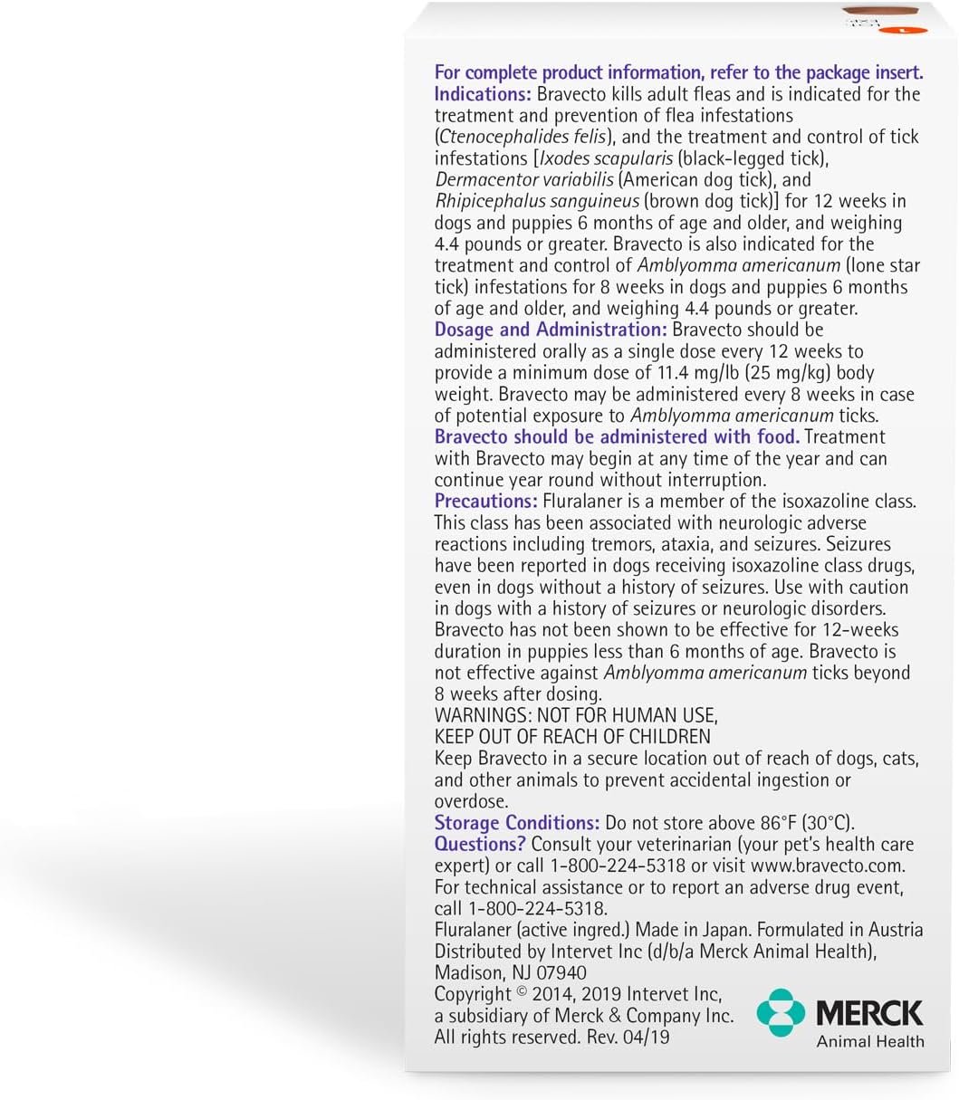 Be the first to review “BRAVECTO Chew for Dogs, Flea & Tick, 1 Chew, 12 Week Supply, 9.9-22 lbs., Orange Box”