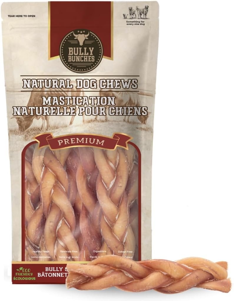 Bully Bunches All Natural Braided 6 Inch Bully Sticks – Odour Free, Rawhide Free, Chemical Free – Safe, Long Lasting Thick Beef Dog Chew Gnaws – Fully Digestible Treat for Small and Medium Dogs, 5 Pk