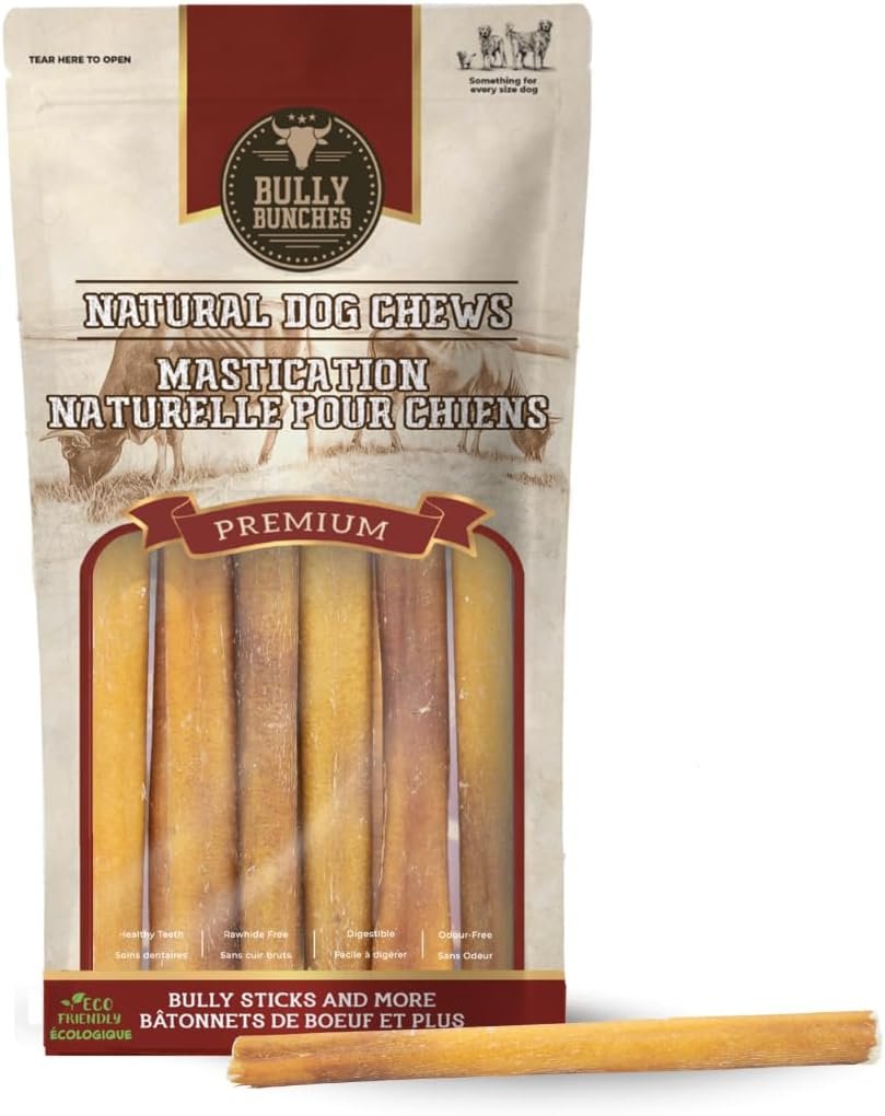 Bully Bunches Premium 6 Inch Standard Odour-Free Bully Sticks – Small Dogs & Puppies – Consistently Sized, Long Lasting Chew Bones – All Natural & Single Ingredient, Beef Dog Treat, No Rawhide (10 Pk)