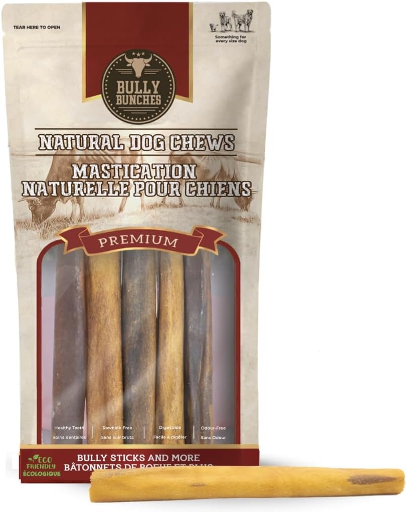 Bully Bunches Premium Beef Collagen Chews for Dogs – All-Natural, Long-Lasting Dental Treats, Protein-Rich, Grain-Free, Healthy Digestive Support for Dogs (6 Inch, 5 Pack)