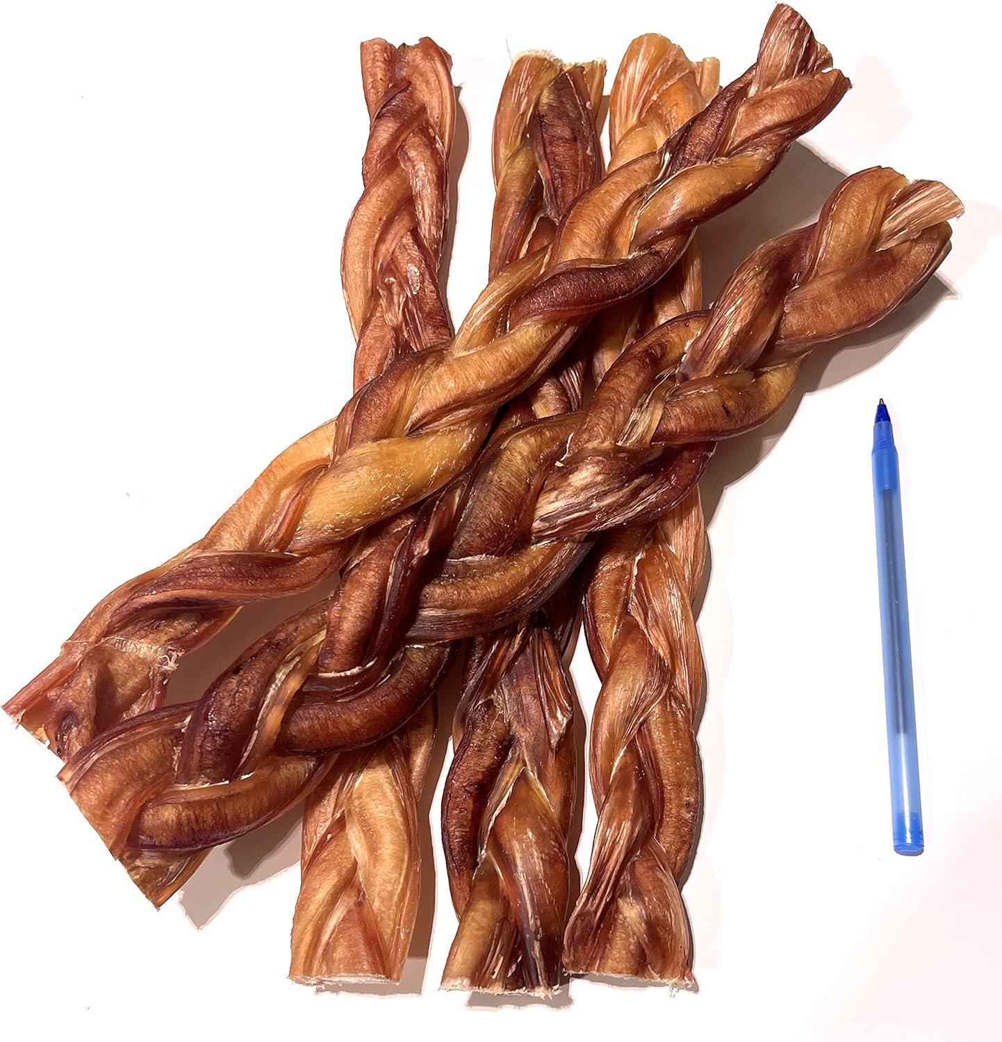 Bully Sticks for Dogs – Bully Sticks Dog Chew Treat – *(12 INCH Braided 3 Pack Standard Size)* – Low to No Odor Bull Pizzle – Premium Long Lasting – Dental Chew