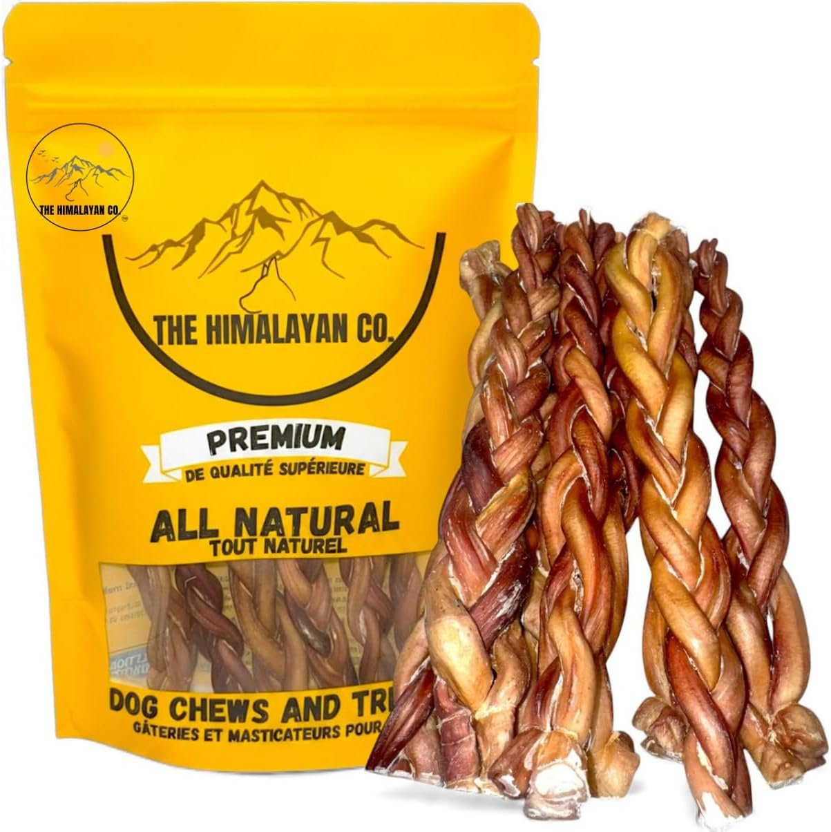 The Himalayan Co. Bully Sticks are long lasting, low to no odor, fully digestible treats that are made with natural single ingredient bull pizzle! Our bully sticks are washed with water, then stretched and dried to preserve the nutrients and natural bully stick flavour dogs go crazy for. Its only ingredient is natural beef pizzle. Thickness will vary in this all natural product. Our bully sticks come in various sizes and the total chew time will vary depending on your dog’s breed and enthusiasm. Larger sizes tend to keep dogs occupied for longer time. Choose whichever size fits your dog best! As with all dog treats, pet supervision is recommended!