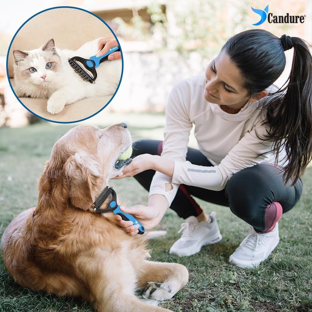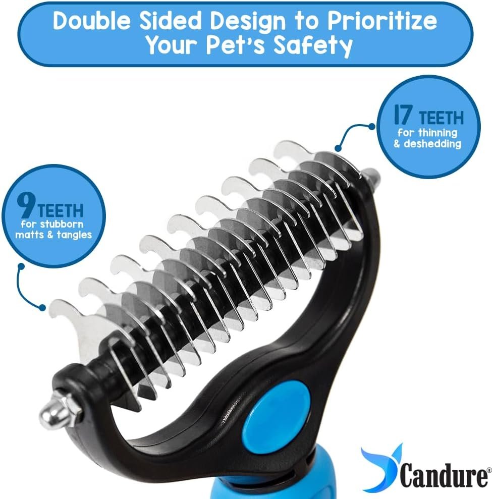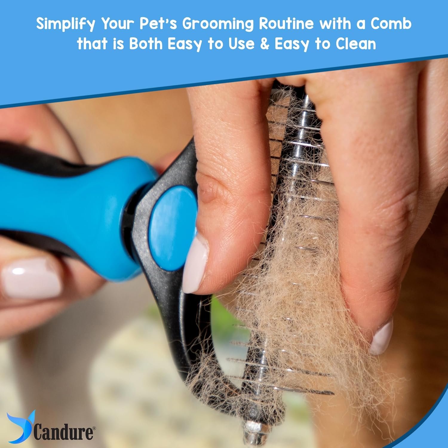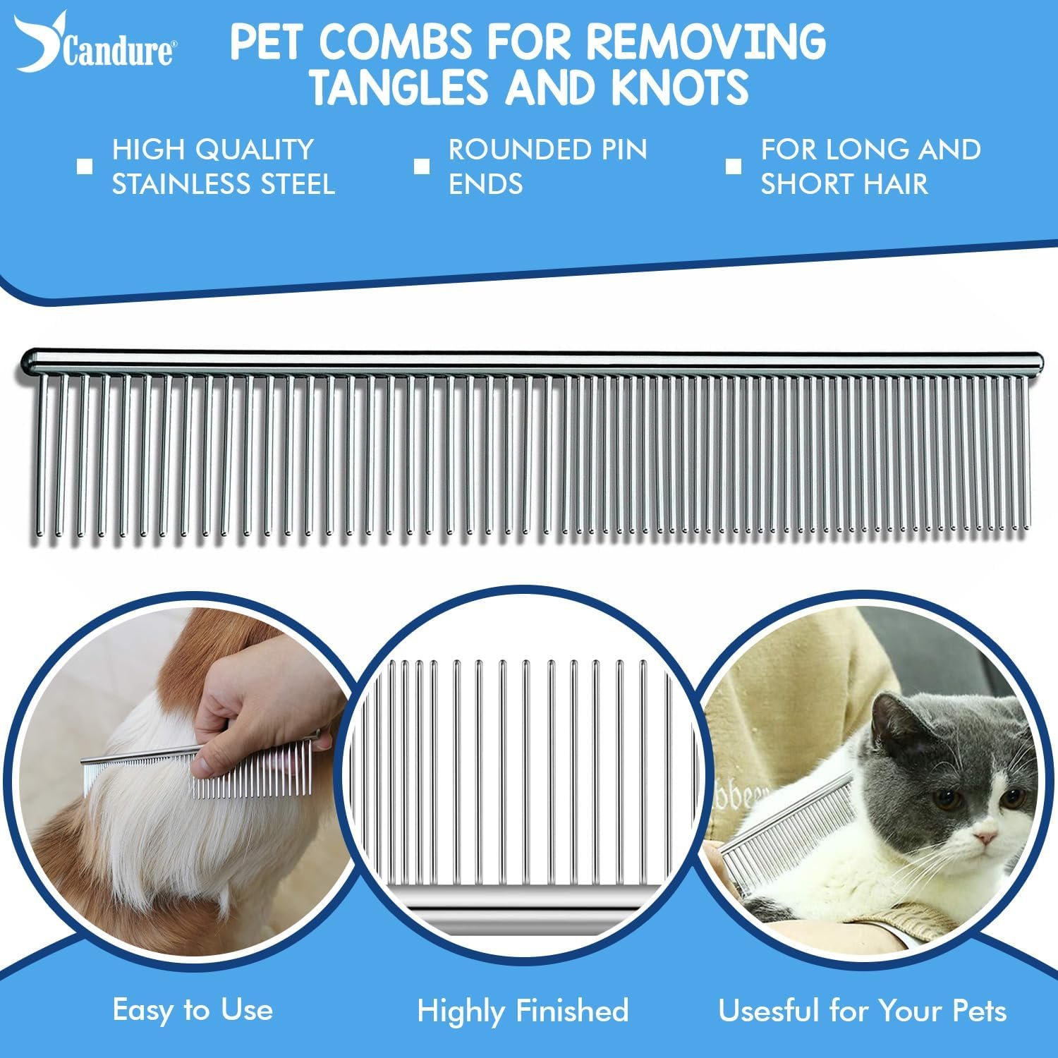 Candure Dematting Comb for Dog and Cat, Pet Grooming Rake and Brushes for Small, Medium Large Dogs 17+9 Double Sided Deshedding Tool Removes Knots & Tangled Hair
